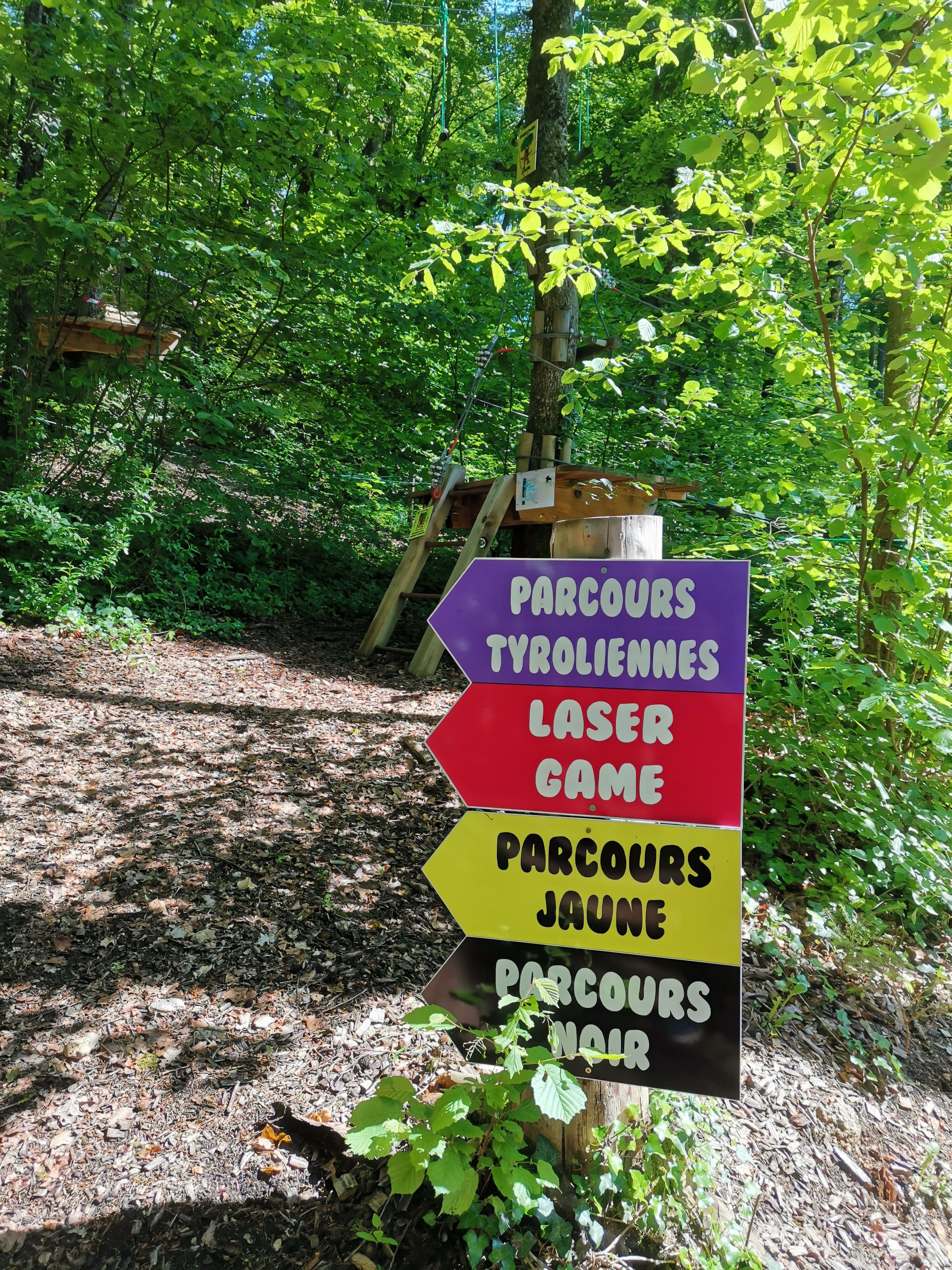 Facile pr trouver, pr se garer. Accueil au top, gérant et employés très agréables. Ns avons été très bien reçues. Activités proposées diverses et variées. Les 2 parcours accrobranche pr les enfants en bas âge sont supers. Un gros plus le sentier pieds nus : très très sympa ! Plein de surprises, de jeux, d'énigmes. Nous y avons passé plus d'une heure sans jms ns ennuyer. Snack parfait, galettes et crêpes excellentes. Ns avons passé une excellente journée en famille donc ns recommandons :).