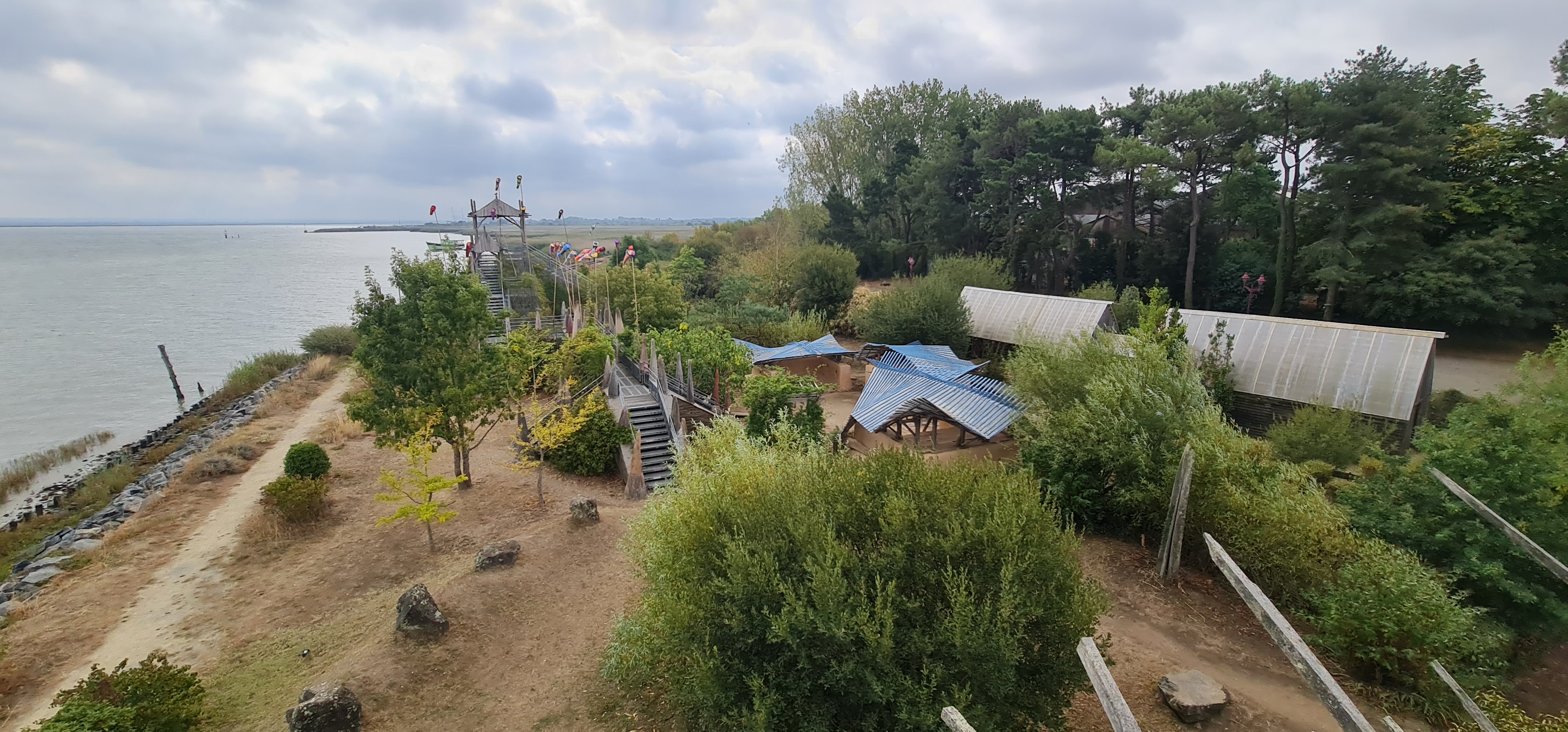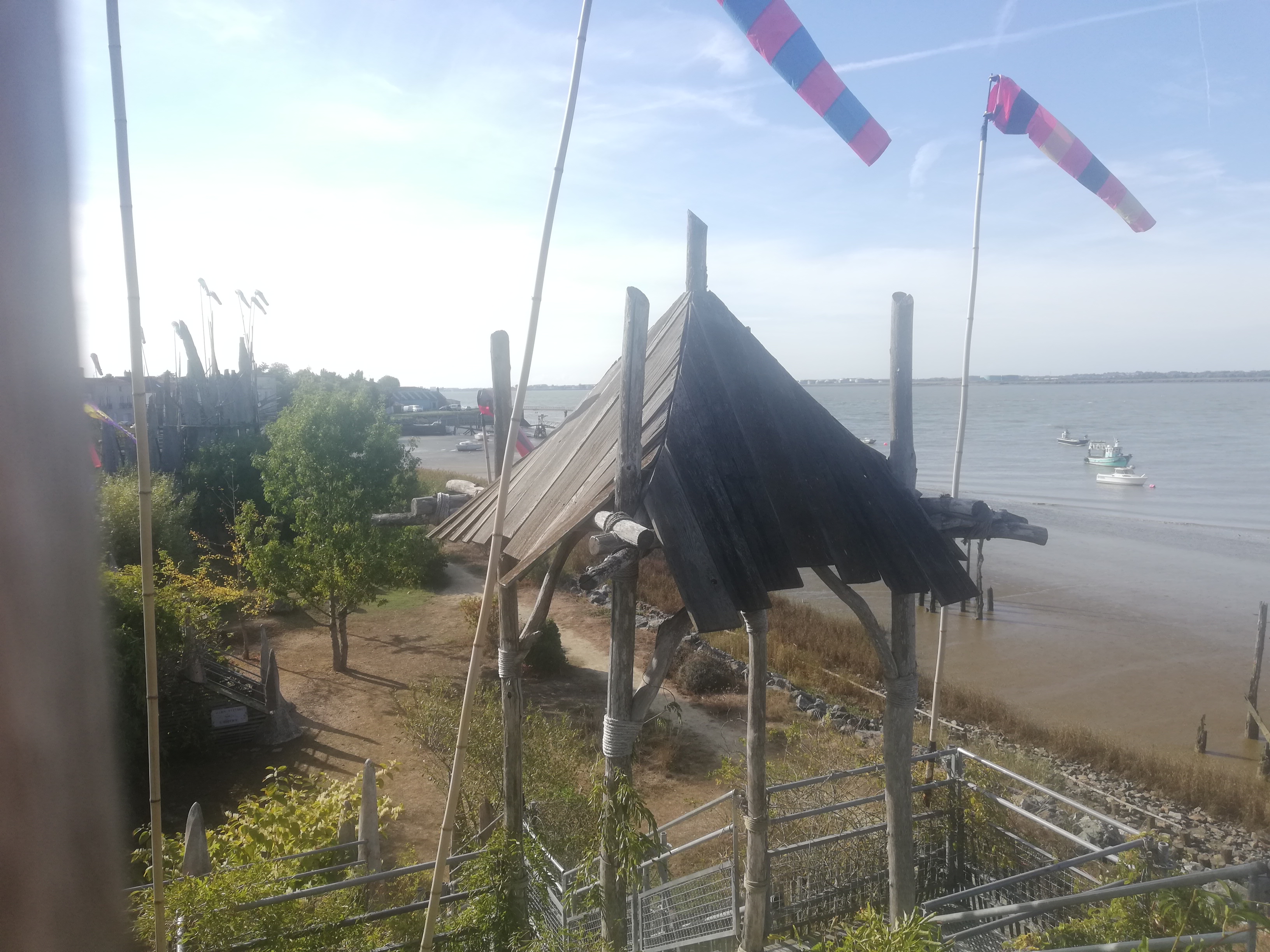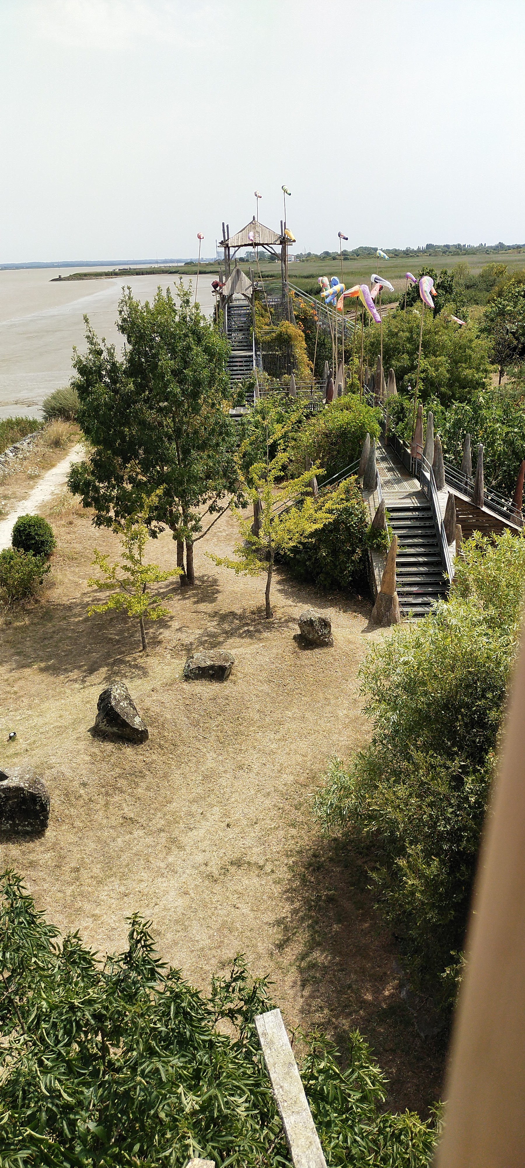 Très très sympa d'avoir fait ce petit jardin avec les bois récupérés de la grande inondation vendéenne ! Dommage que le temps était maussade car avec un beau ciel clair et bleu, voir voler ces drapeaux multicolores au gré des vents de Loire aurait été splendide mais malgré ca j'ai adorée, c'est à faire dans le parcours des curiosités de l'estuaire de la Loire à découvrir 😉