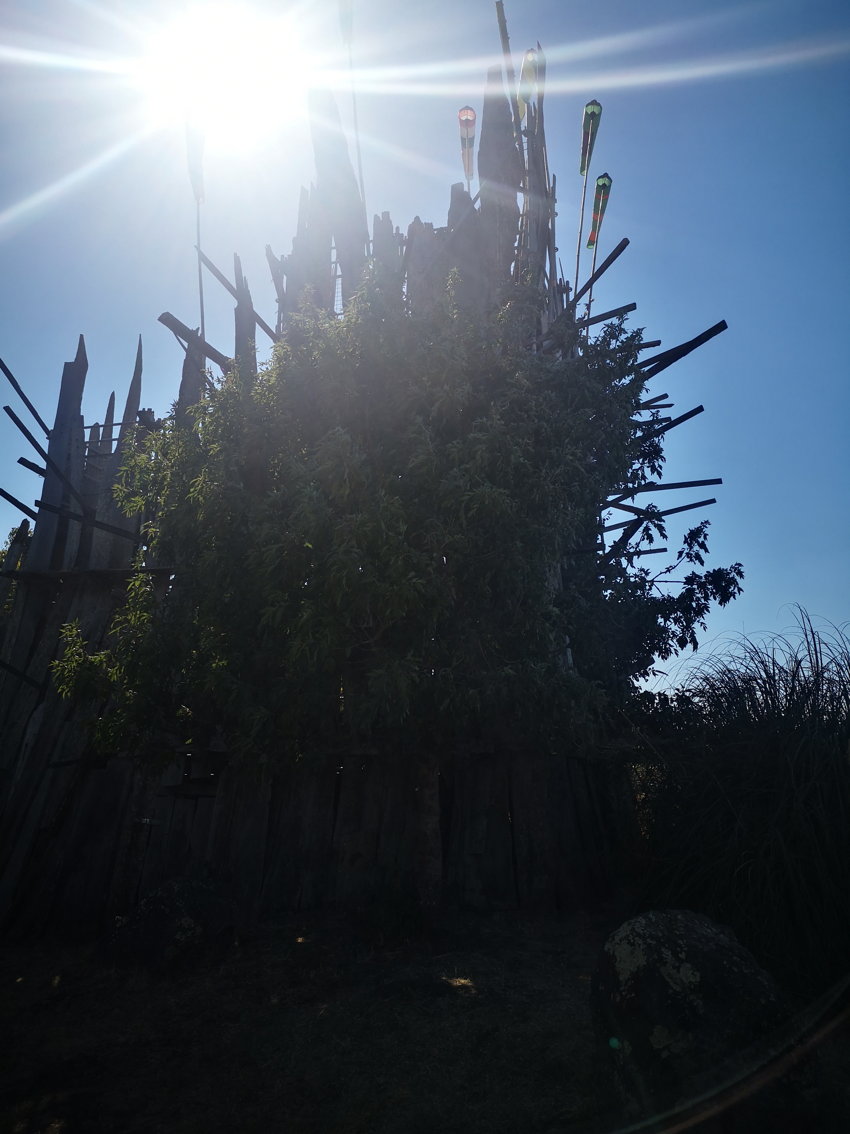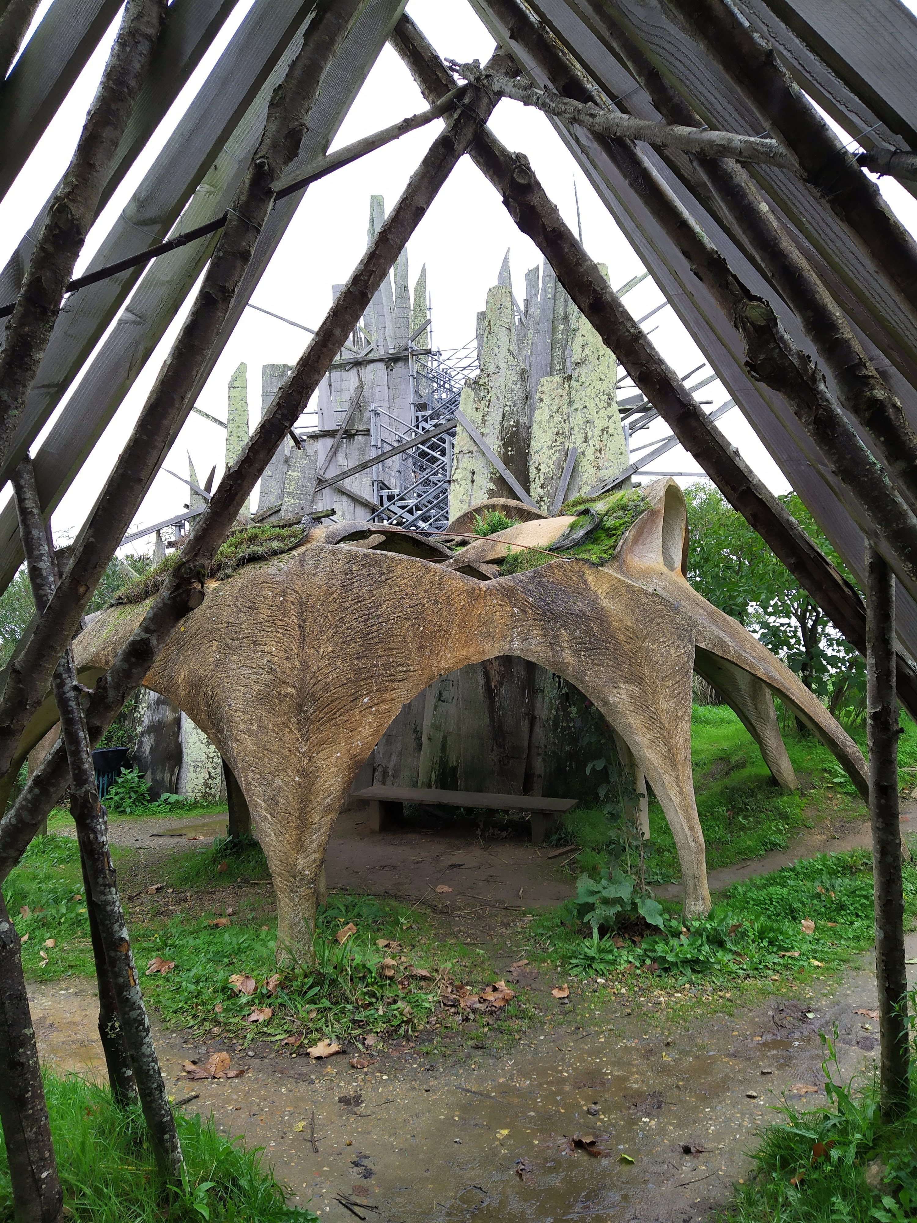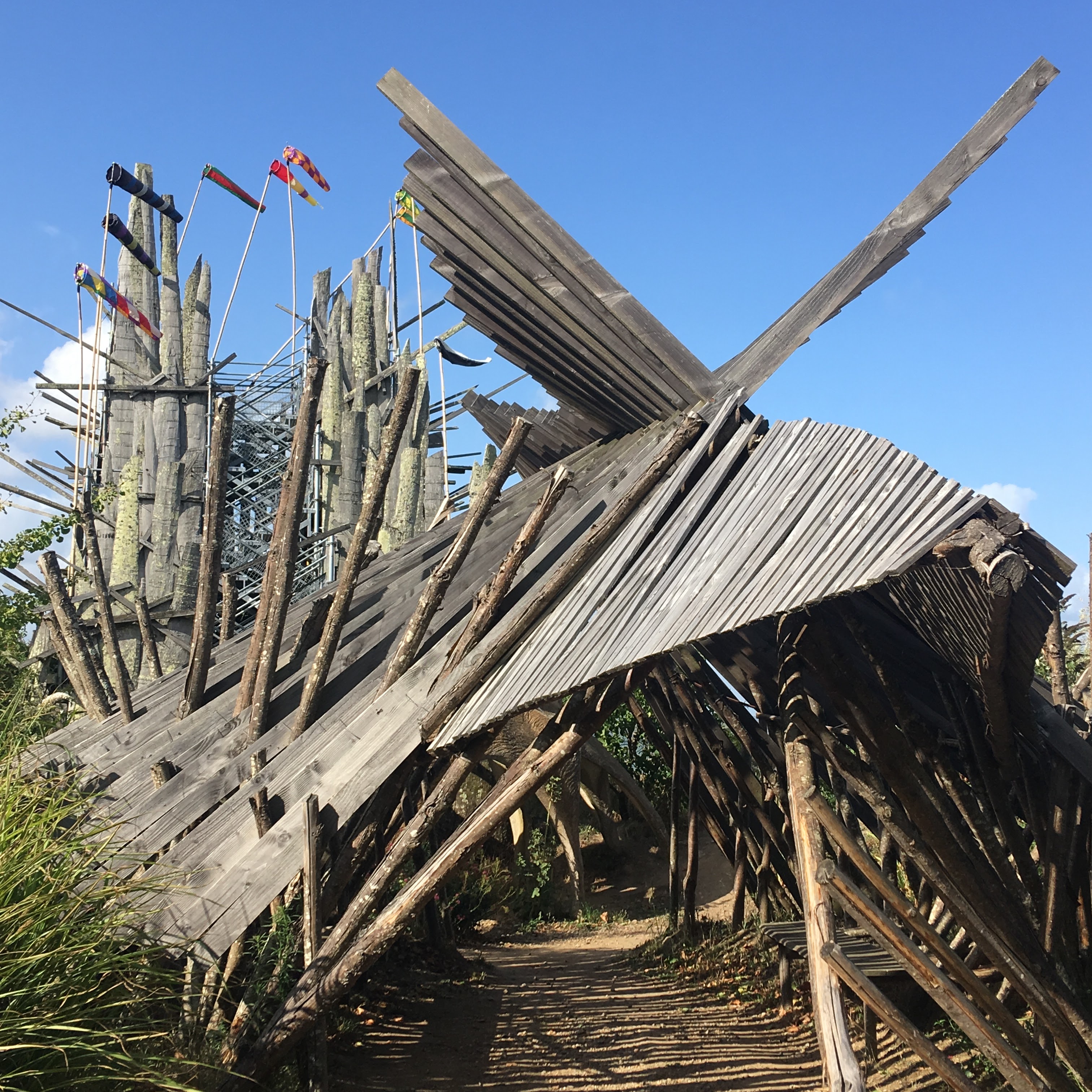 Juste quelques échafaudages et morceaux de bois, abandonnés mais propres. Un projet artistique d'une décennie écoulée qui ne vaut pas le détour et ne mérite guère qu'on s'y arrête. L'aire de pique-nique arborée à côté est bien plus agréable.