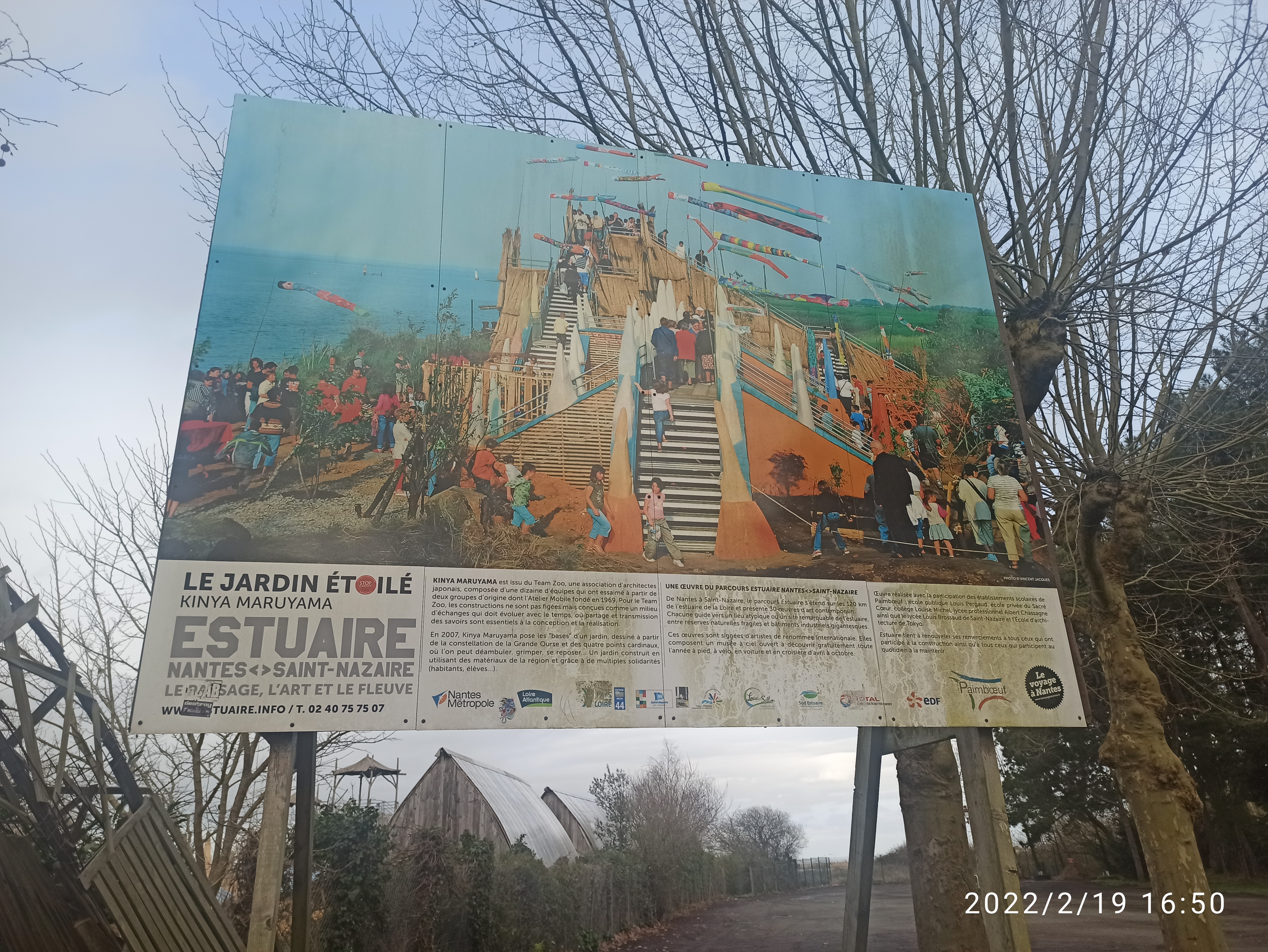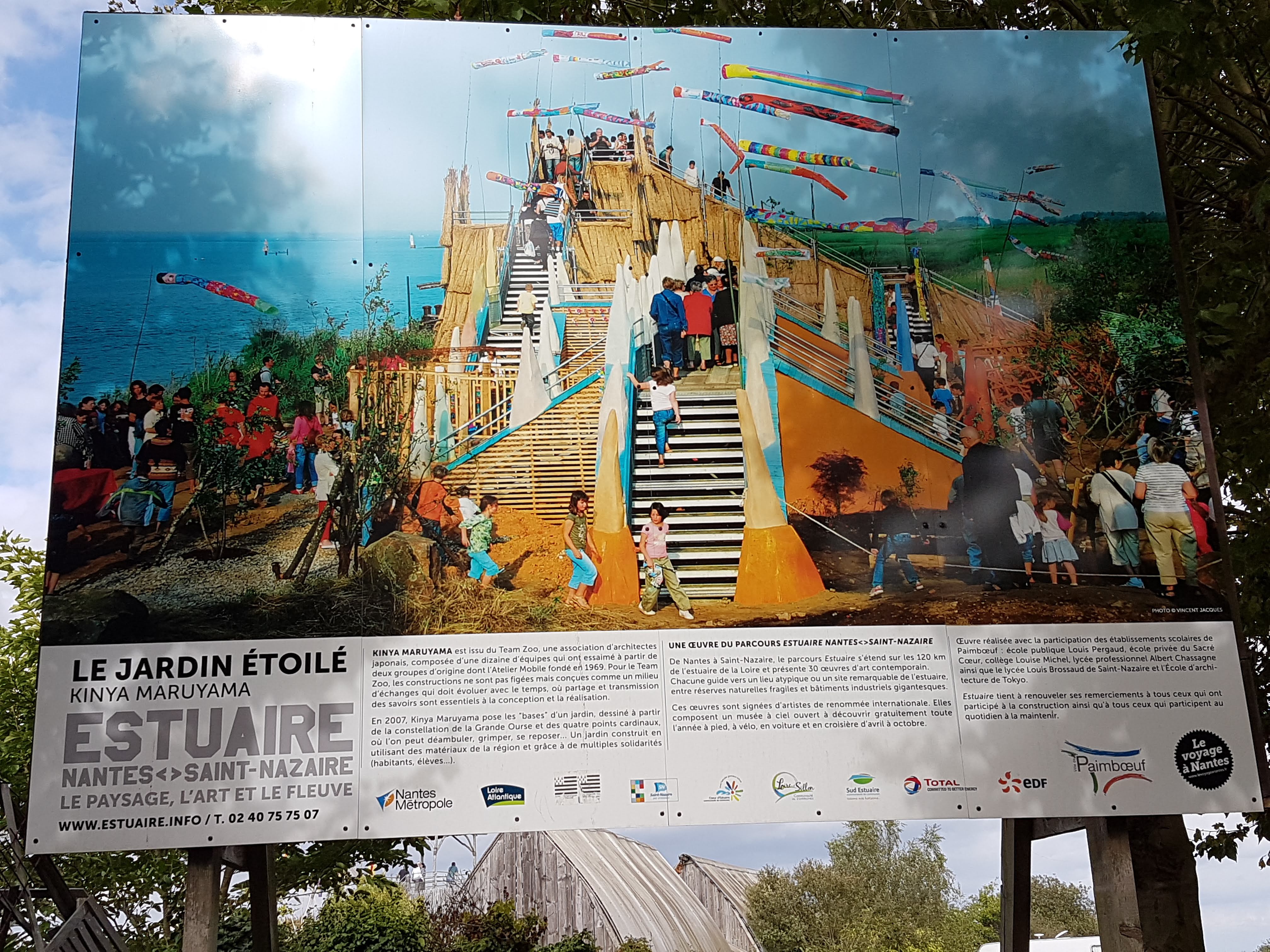 Jolie balade onirique à l'estuaire de la Loire, accessible avec le chemin de la Loire en vélo. Centre de Paimboeuf à proximité, et en continuant vers l'océan un beau parc avec restauration. Certains jours un escape game est organisé sur le thème japonais/étoiles, une belle façon de se faire guider dans la promenade.