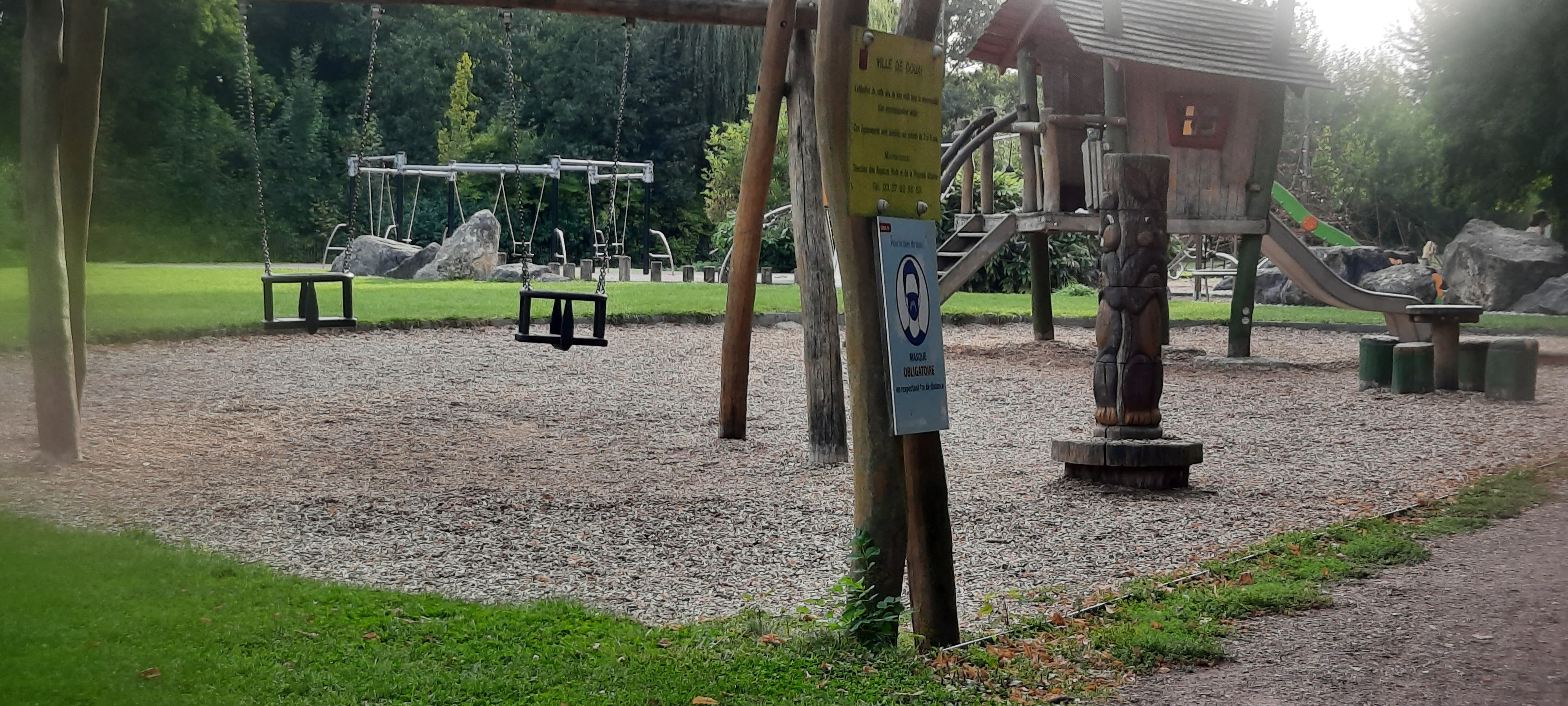 Beau parc bien entretenu. Mes enfants adorent. Balançoires tyrolienne, toboggans, tourniquet...