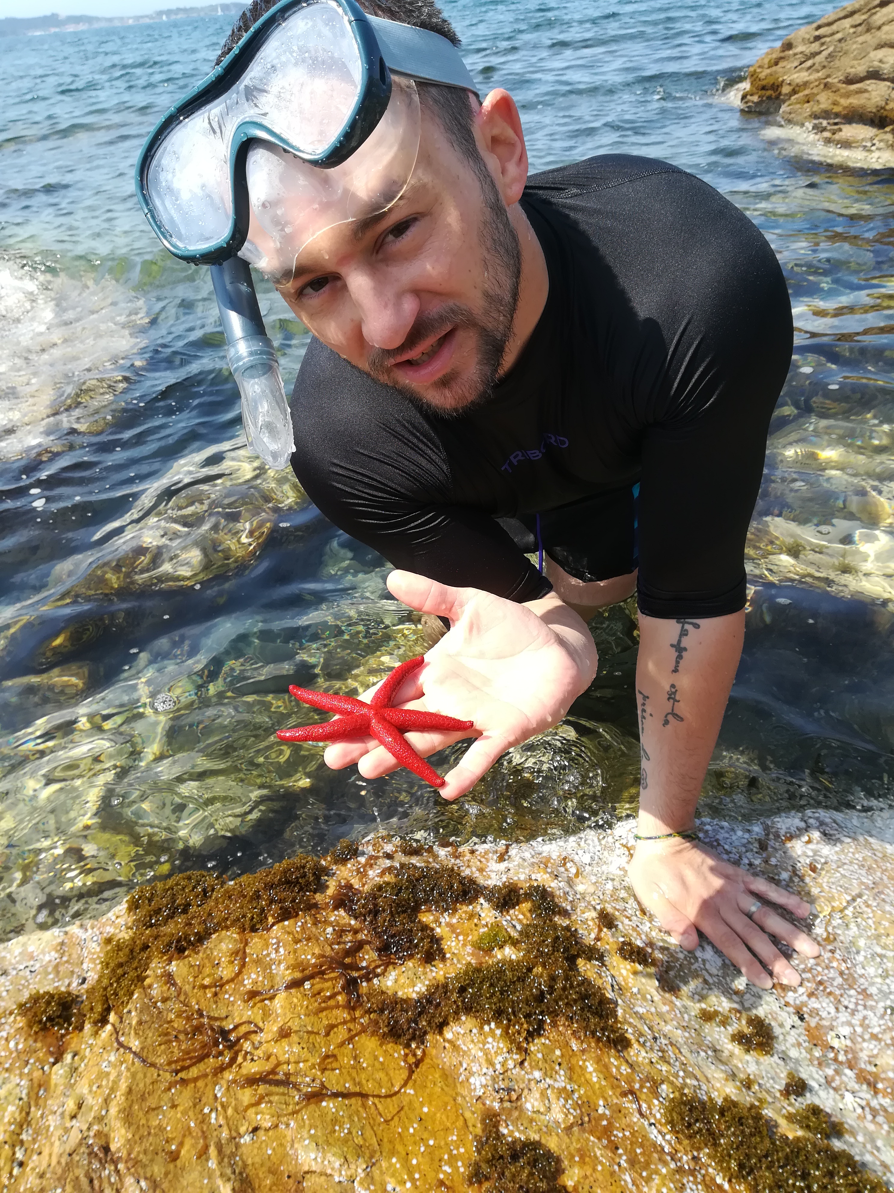 Nous avons clôturer notre séjour dans ce lieu qui offre plein de possibilités aux visiteurs. Nous avons trouvé une crique, (il faut tout de même être bien chaussé pour descendre la falaise) au cours de l'expédition sous marine, voilà ce que Martin trouve !!! (nous l'avons préservé)