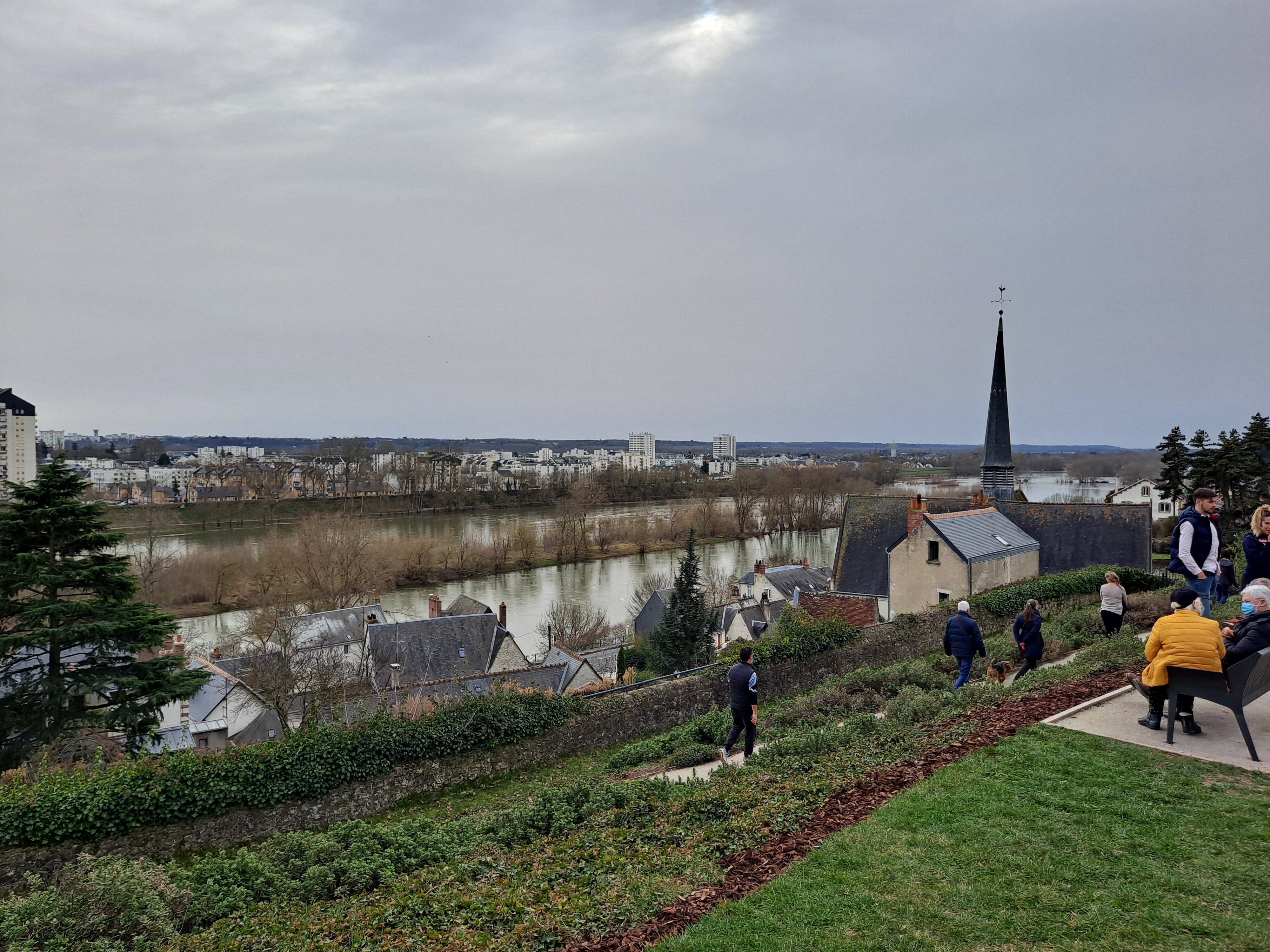 Tres beau parc au dessus de la Loire où nous pouvons apercevoir le haut de la Tour Charlemagne et la Basilique St Martin notamment