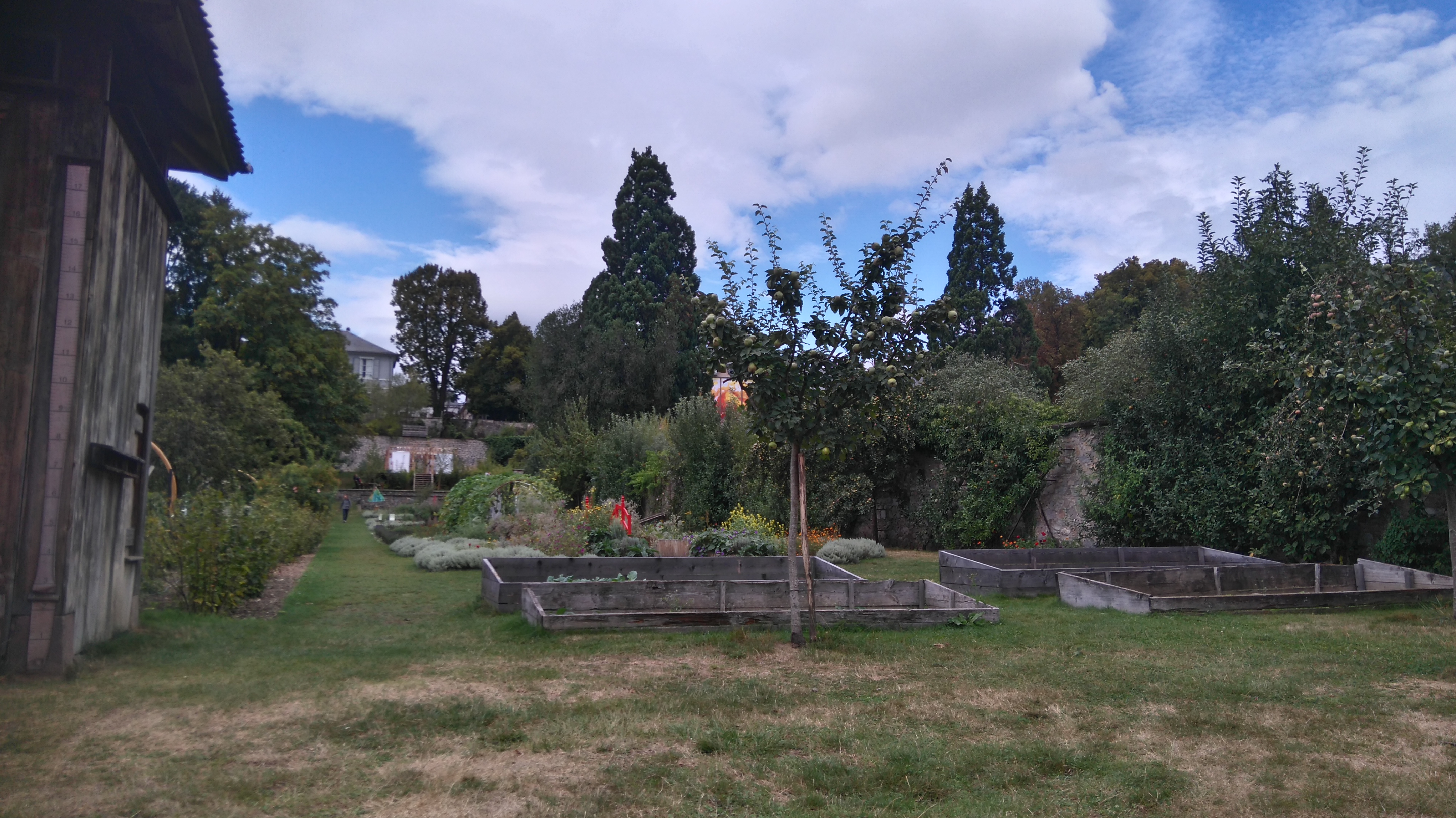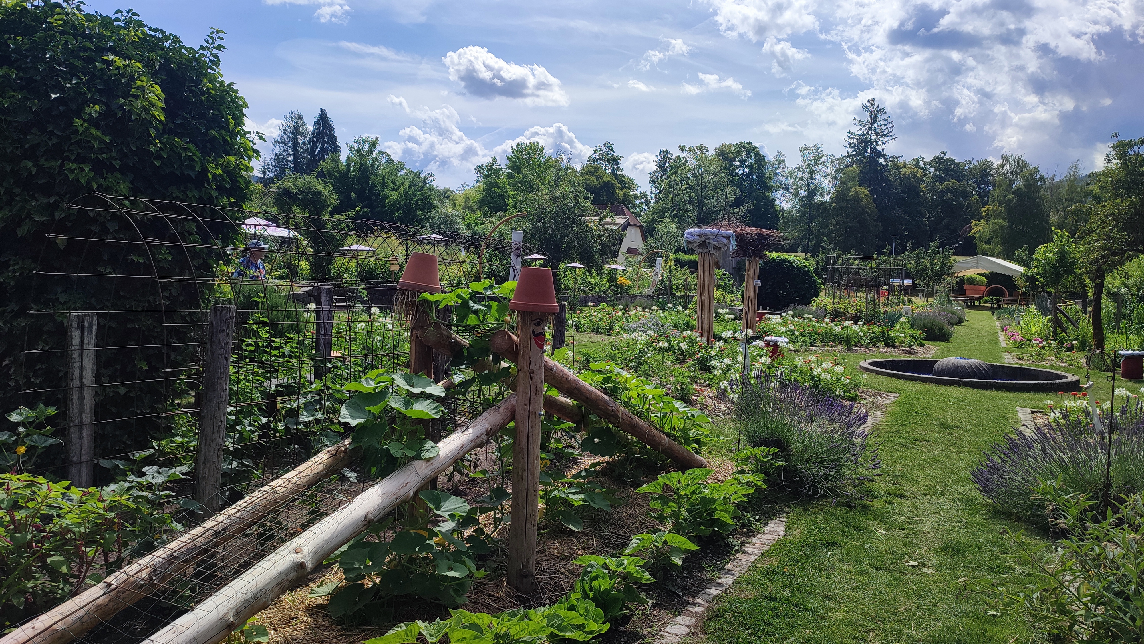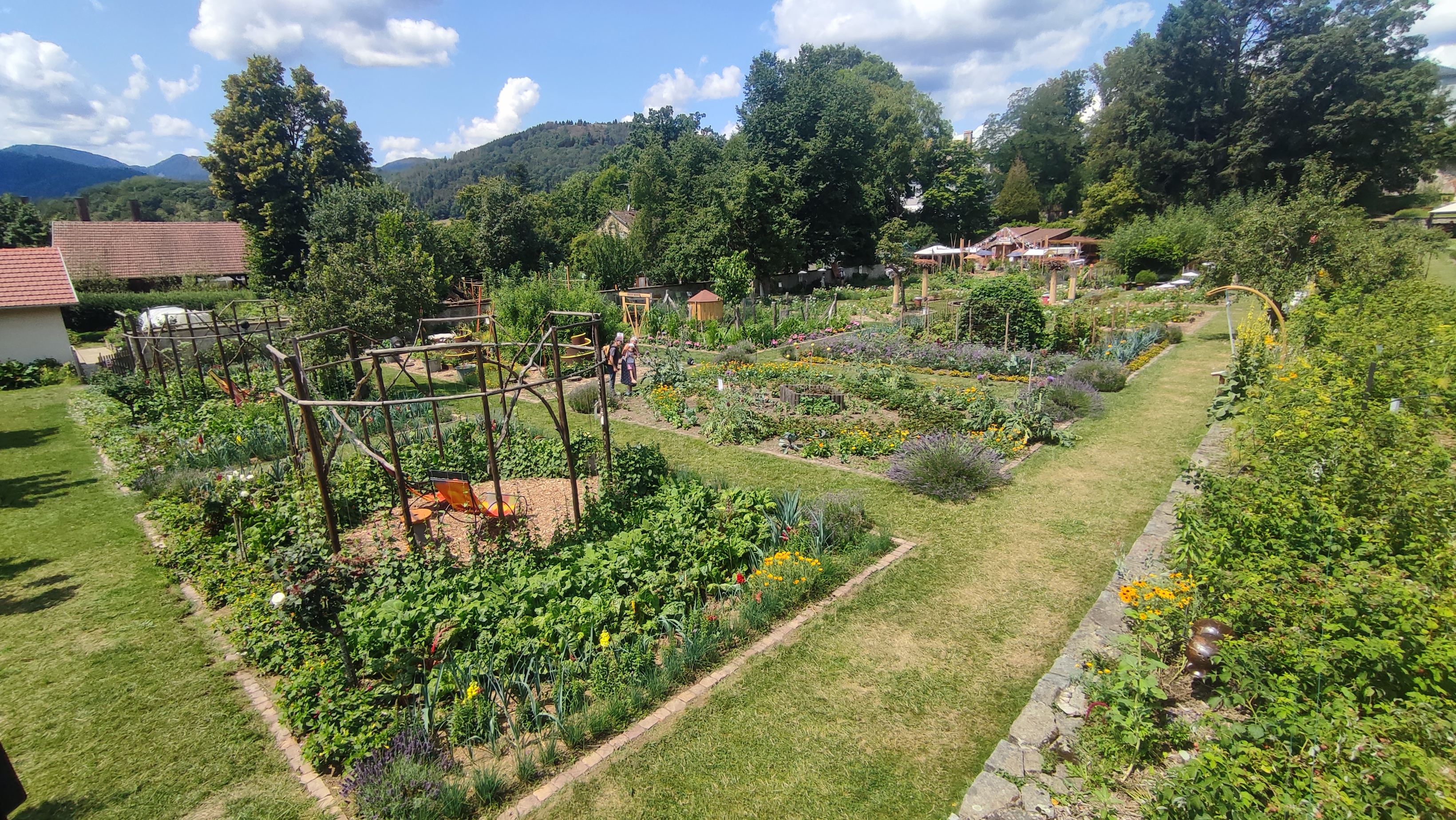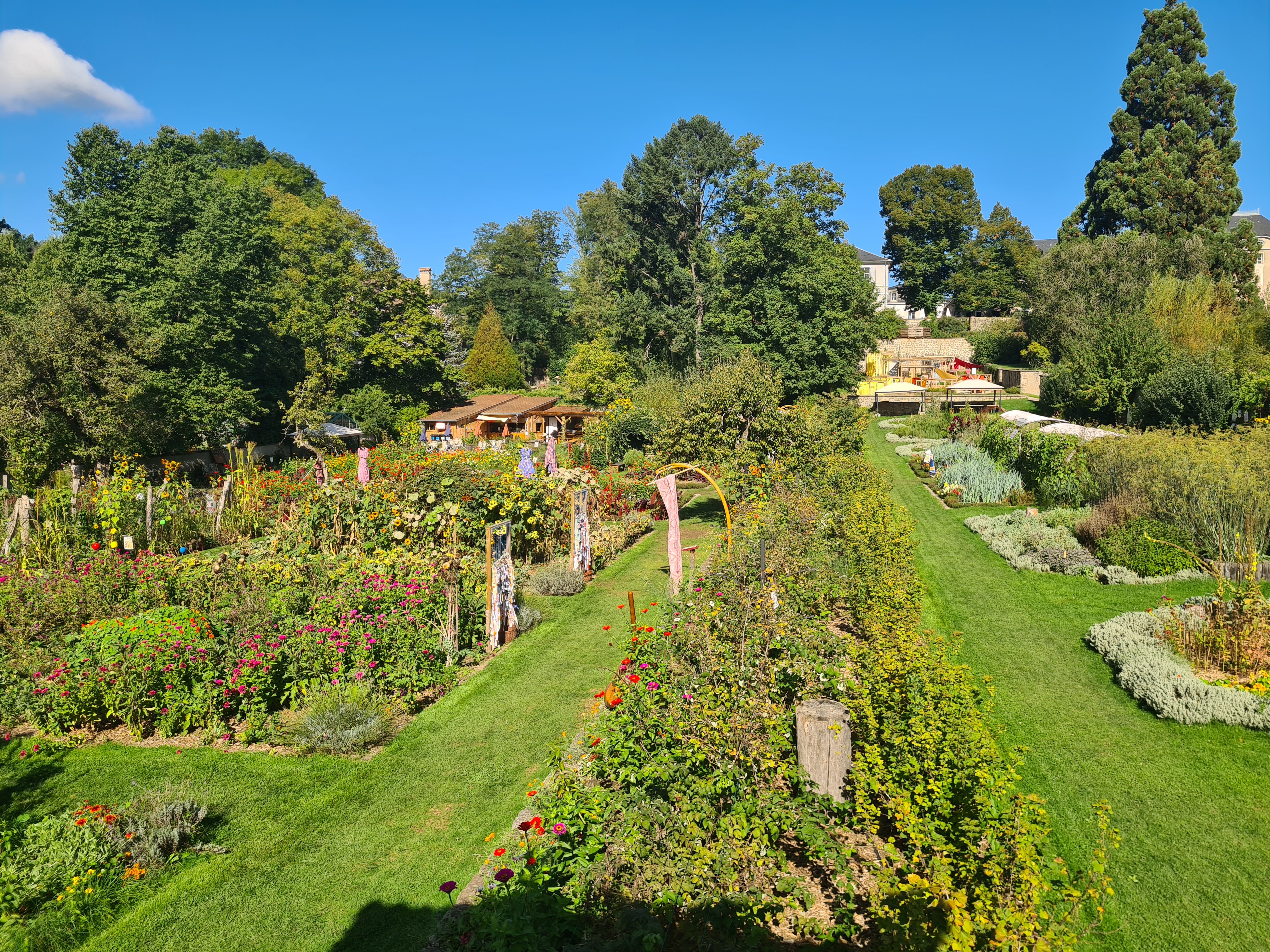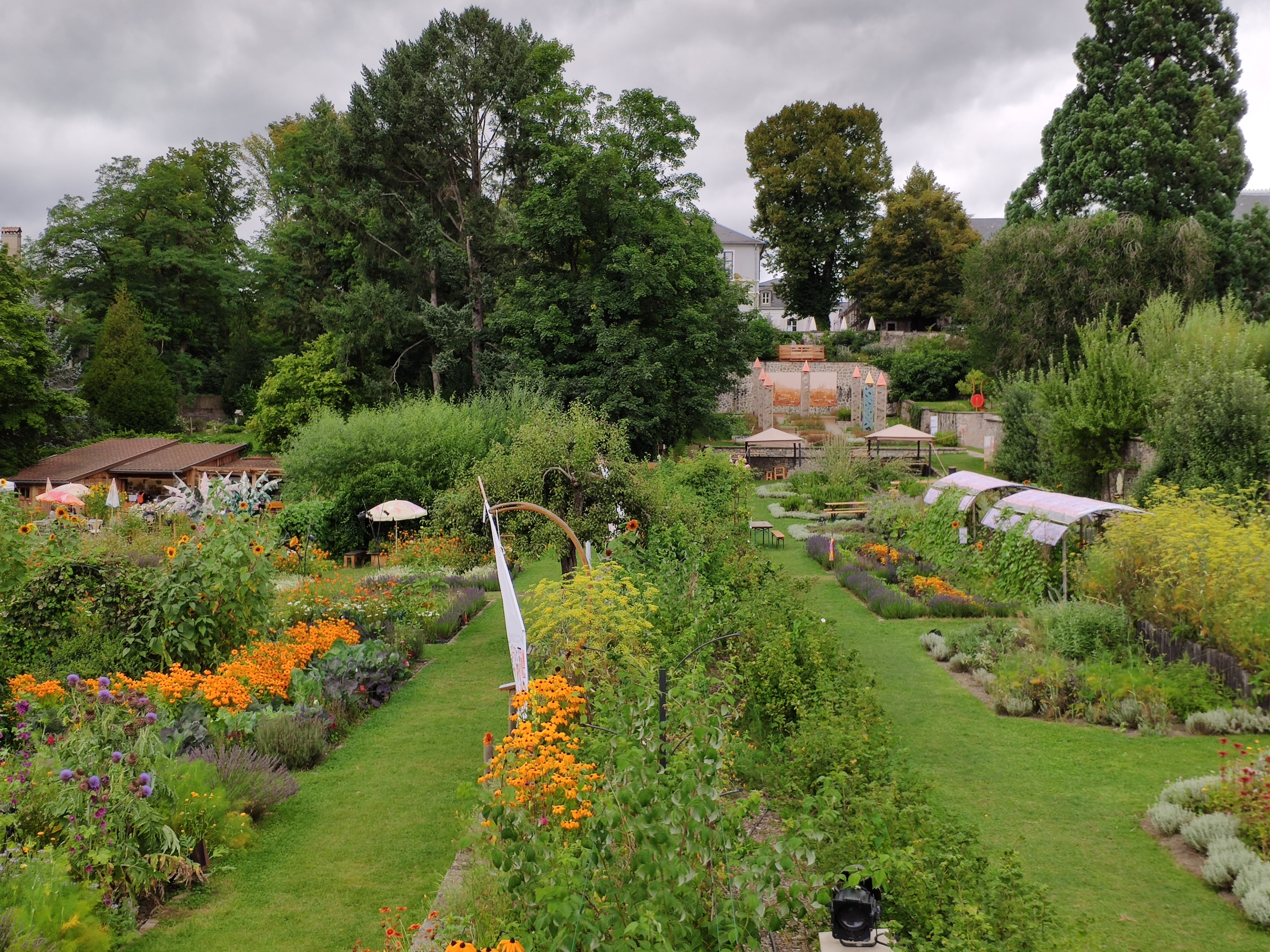 Bon ok nous y étions un jours de pluie mais très bel endroit avec de beaux parterre de fleurs mélangé avec des légumes très Beaux Parcontre ce qui est dommage lundi mardi la boutique des créateurs la brasserie et le magasin d alimentations régional FERMÉ franchement DOMMAGE