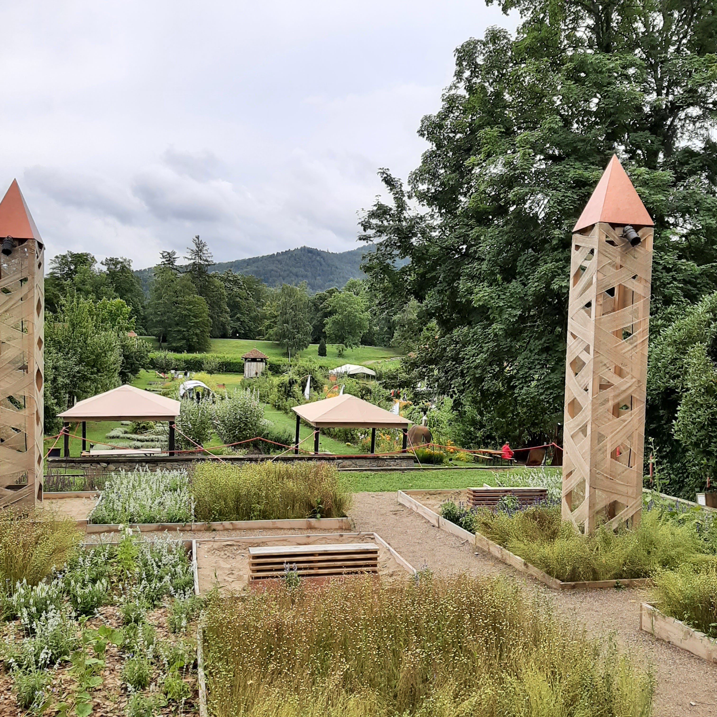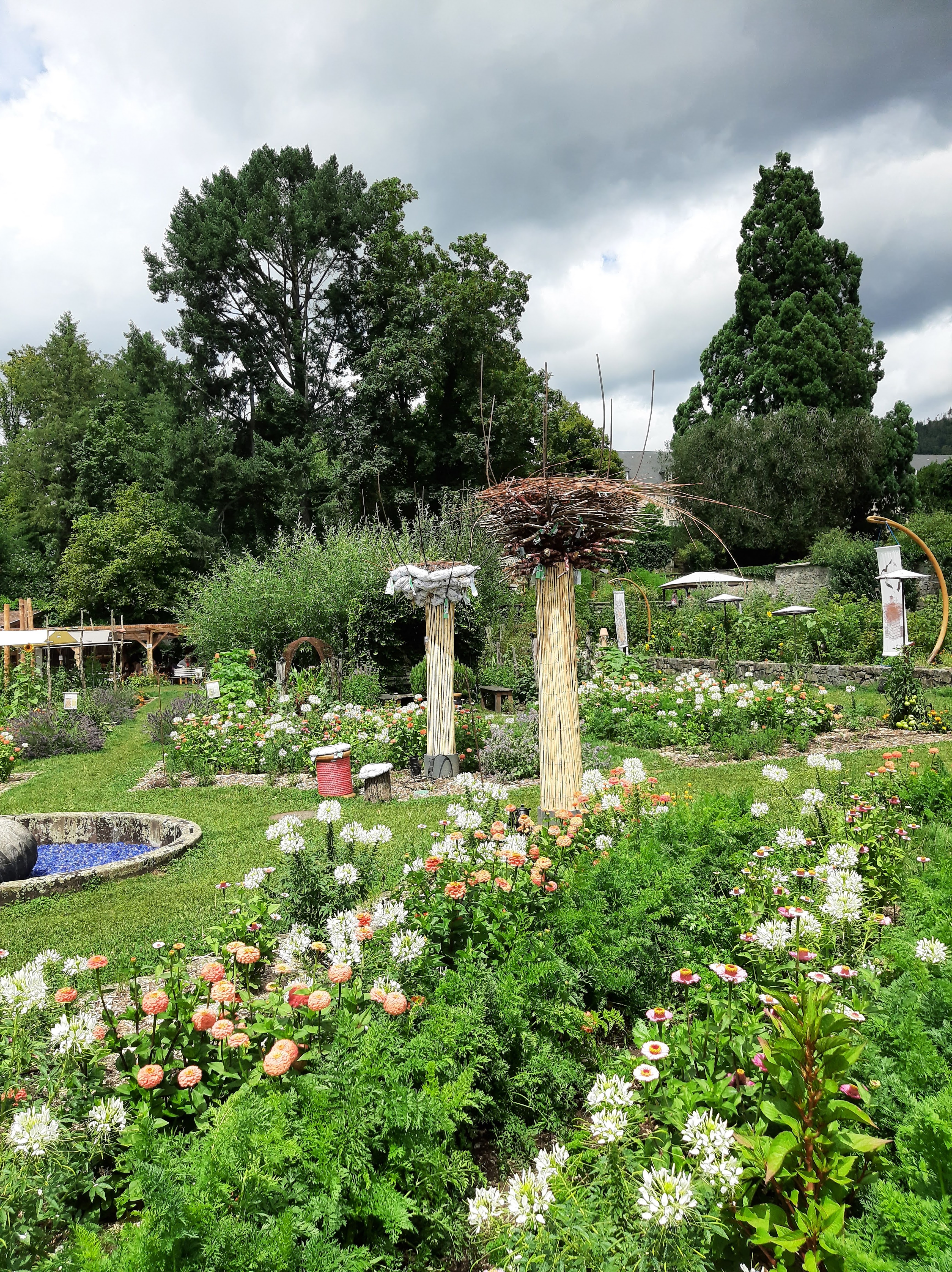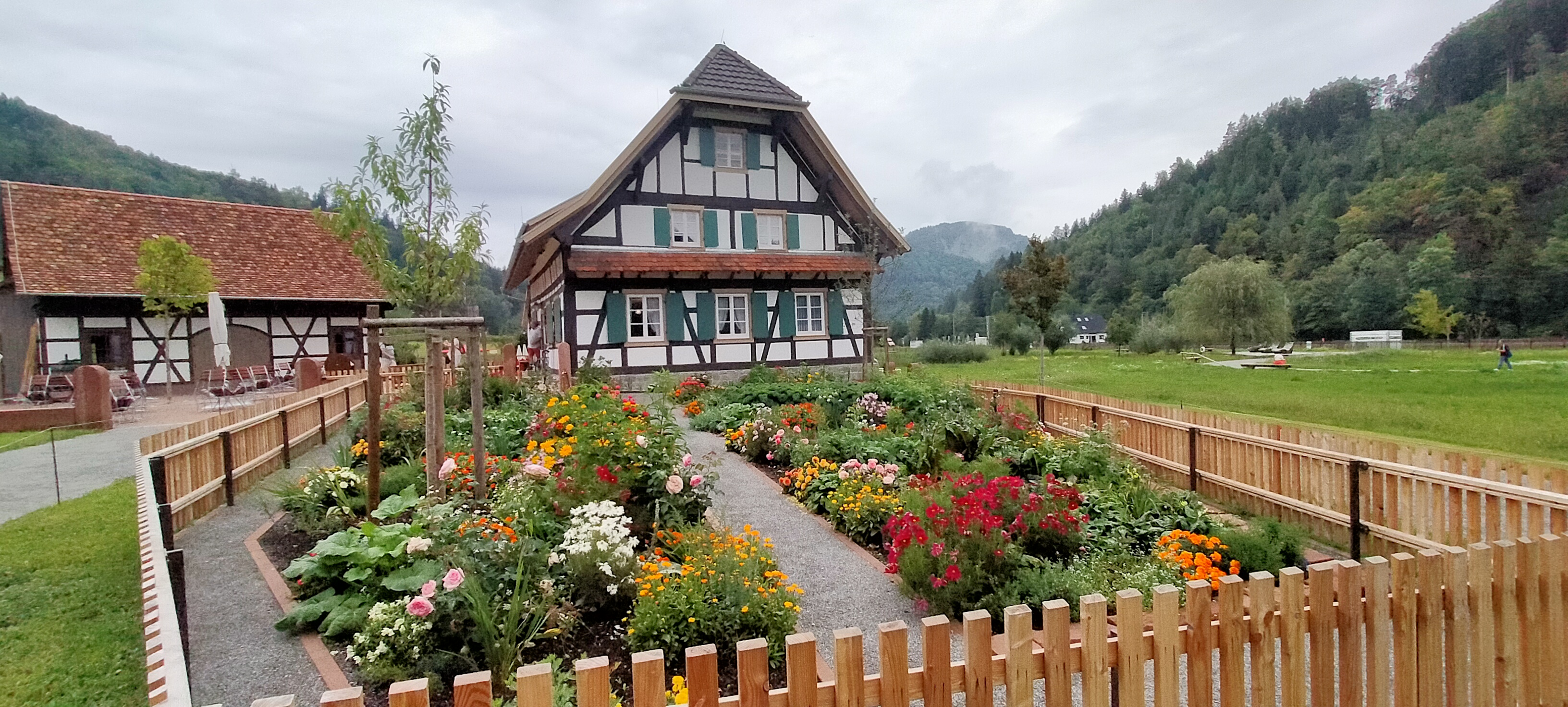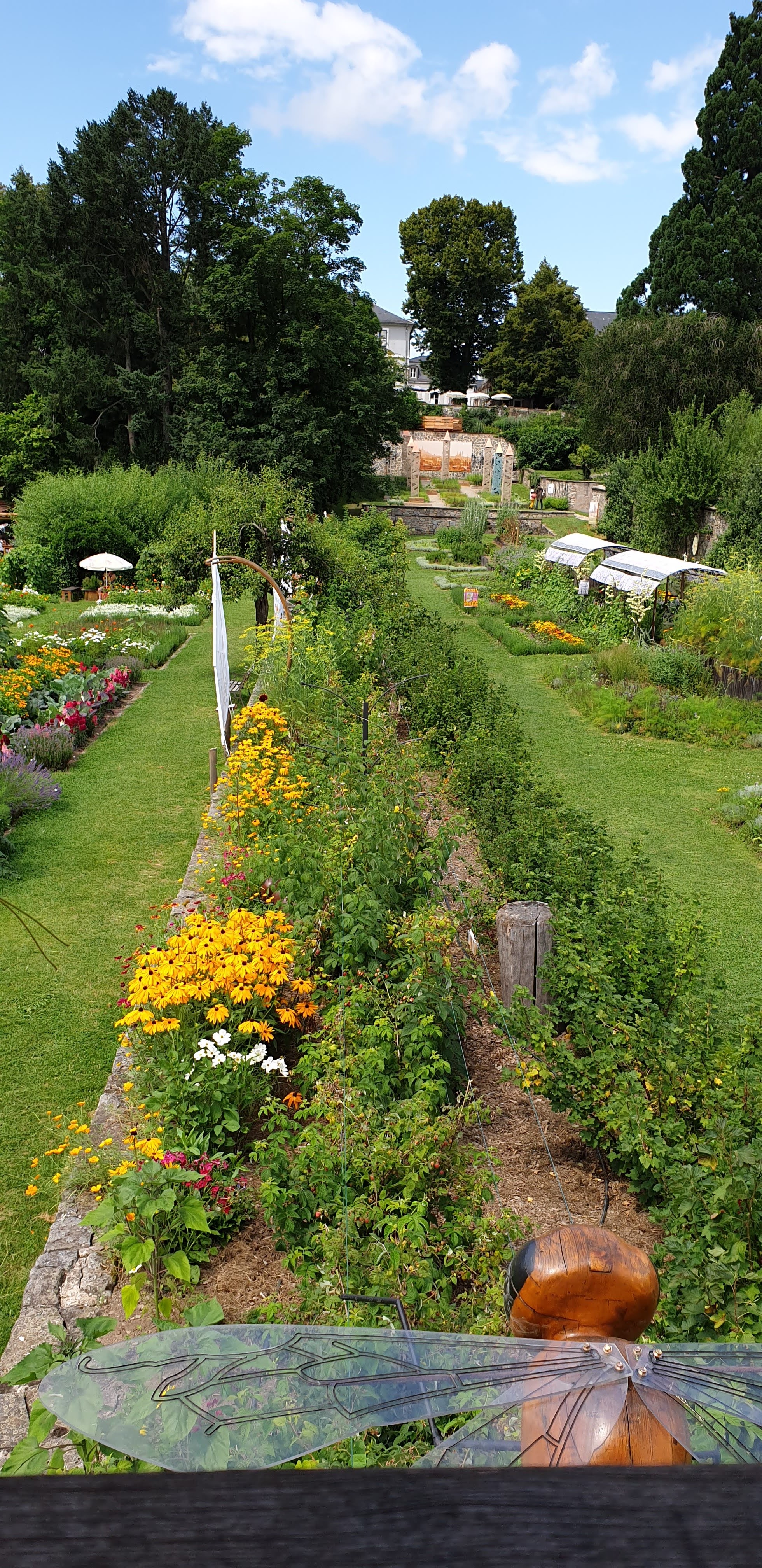 Bon ok nous y étions un jours de pluie mais très bel endroit avec de beaux parterre de fleurs mélangé avec des légumes très Beaux Parcontre ce qui est dommage lundi mardi la boutique des créateurs la brasserie et le magasin d alimentations régional FERMÉ franchement DOMMAGE