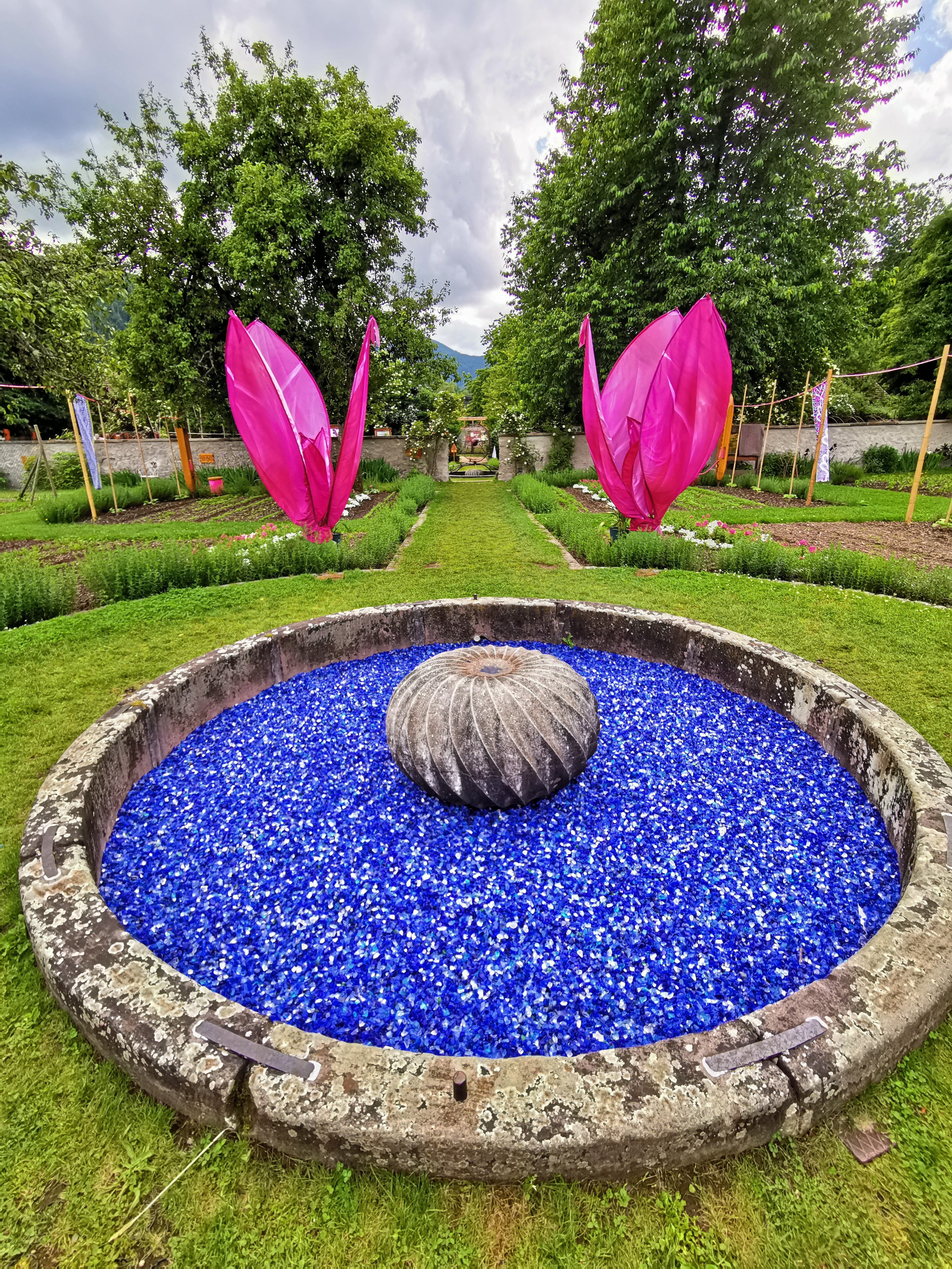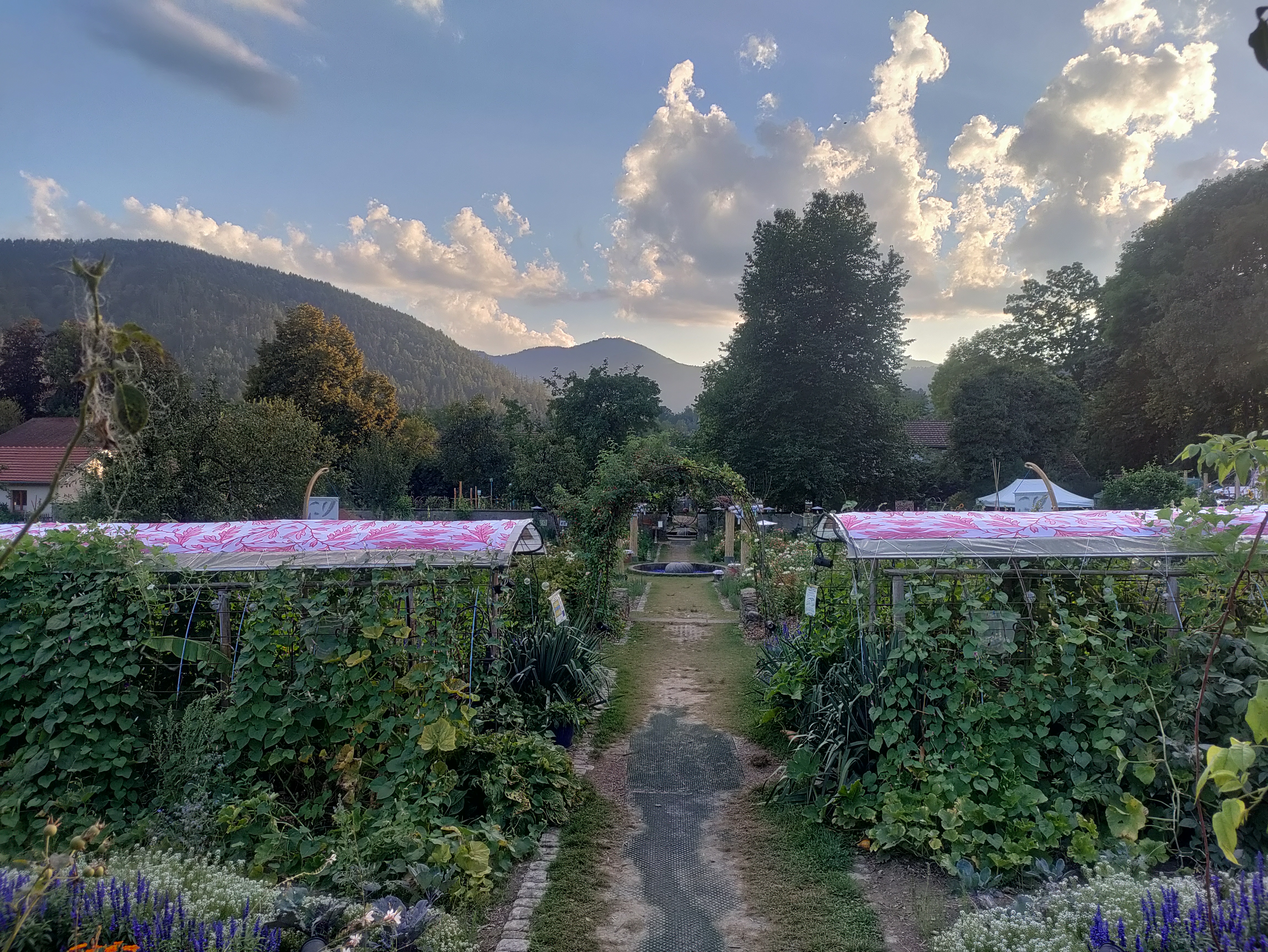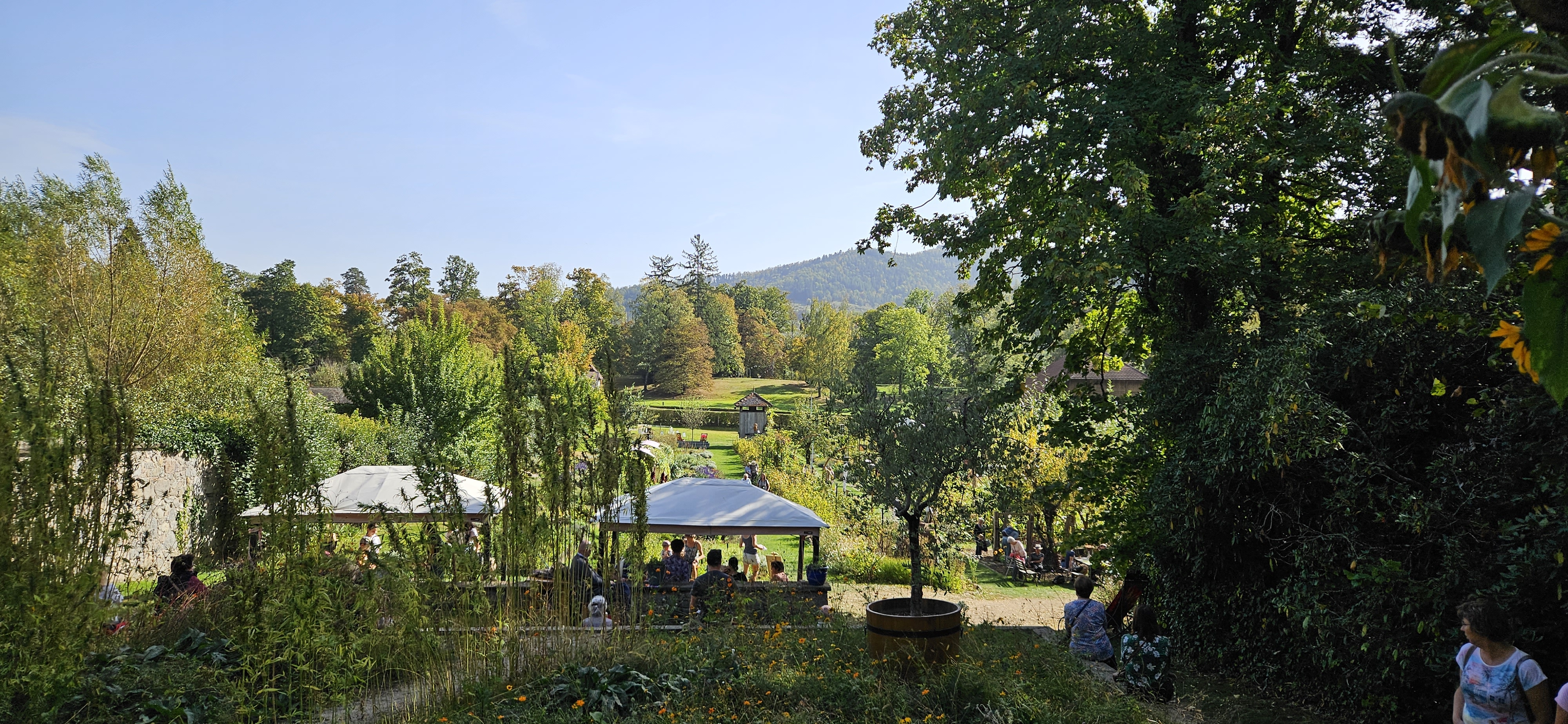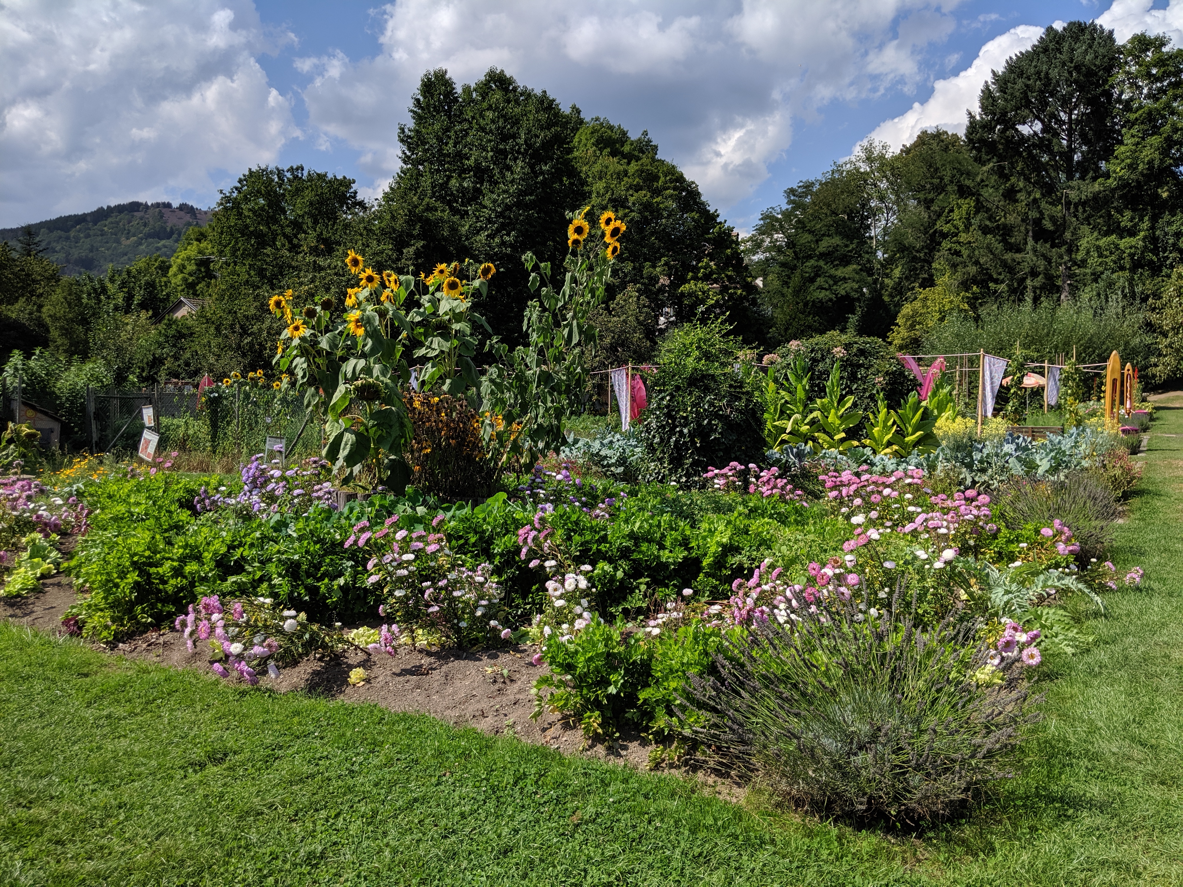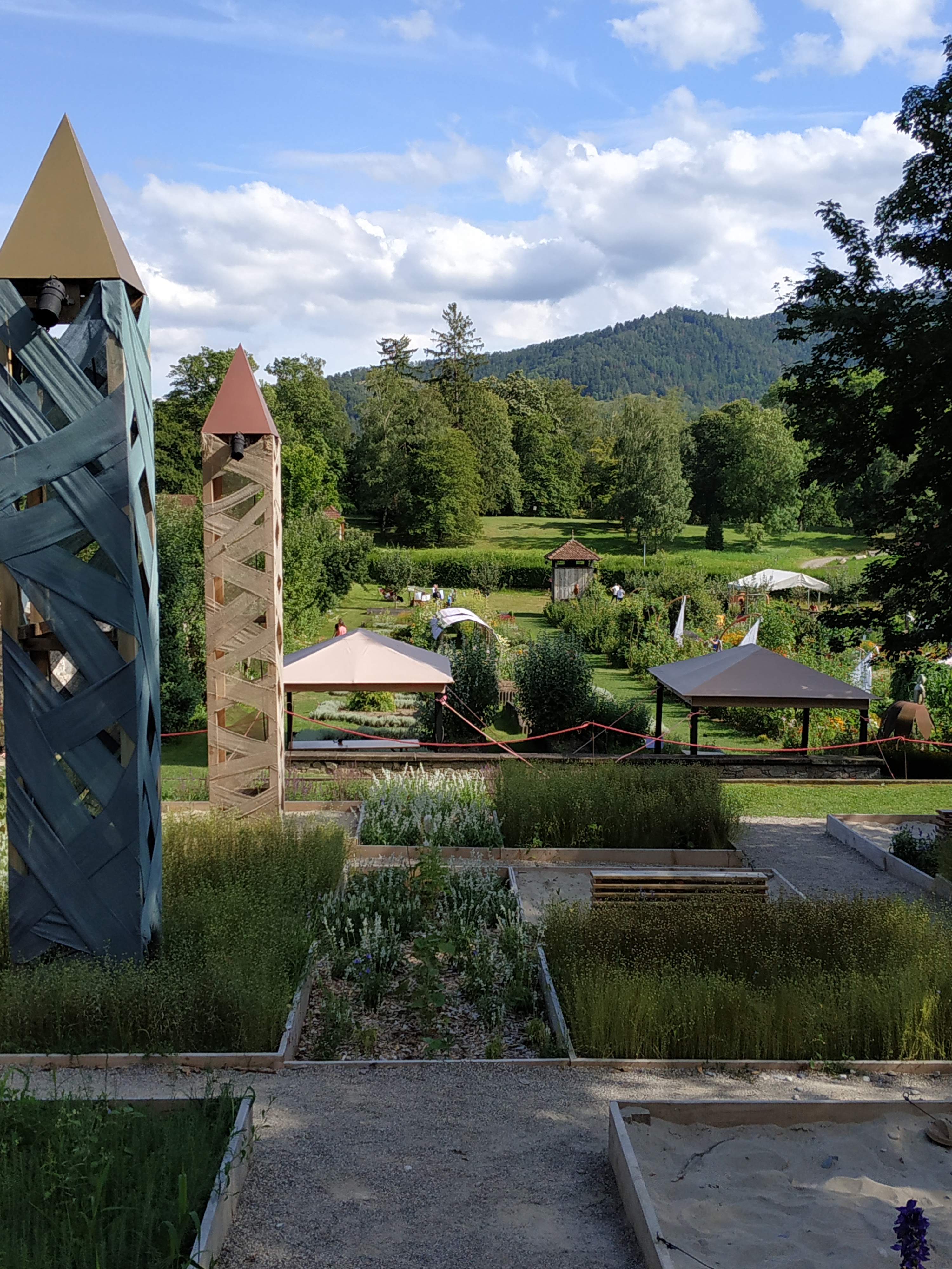 Bon ok nous y étions un jours de pluie mais très bel endroit avec de beaux parterre de fleurs mélangé avec des légumes très Beaux Parcontre ce qui est dommage lundi mardi la boutique des créateurs la brasserie et le magasin d alimentations régional FERMÉ franchement DOMMAGE
