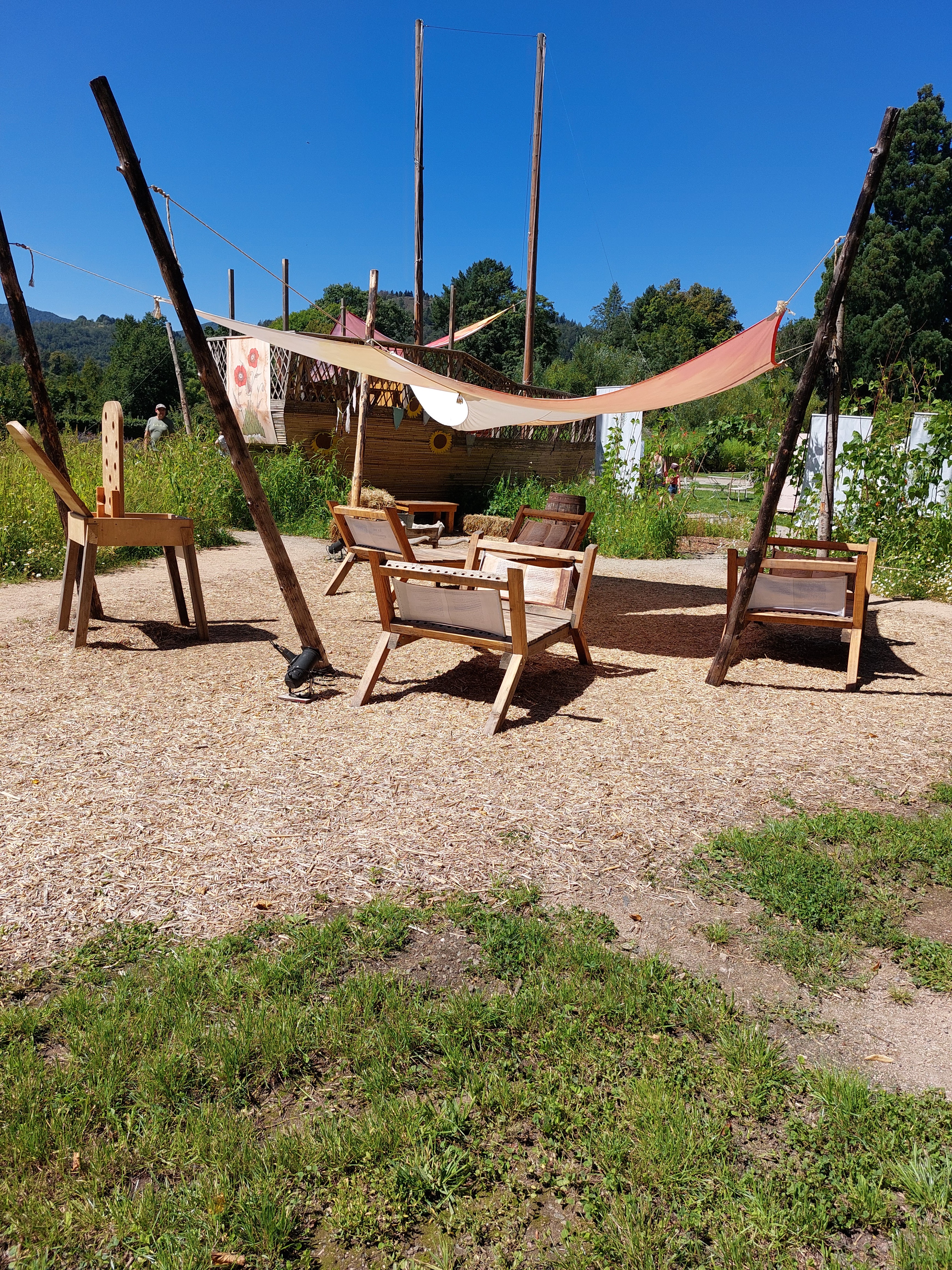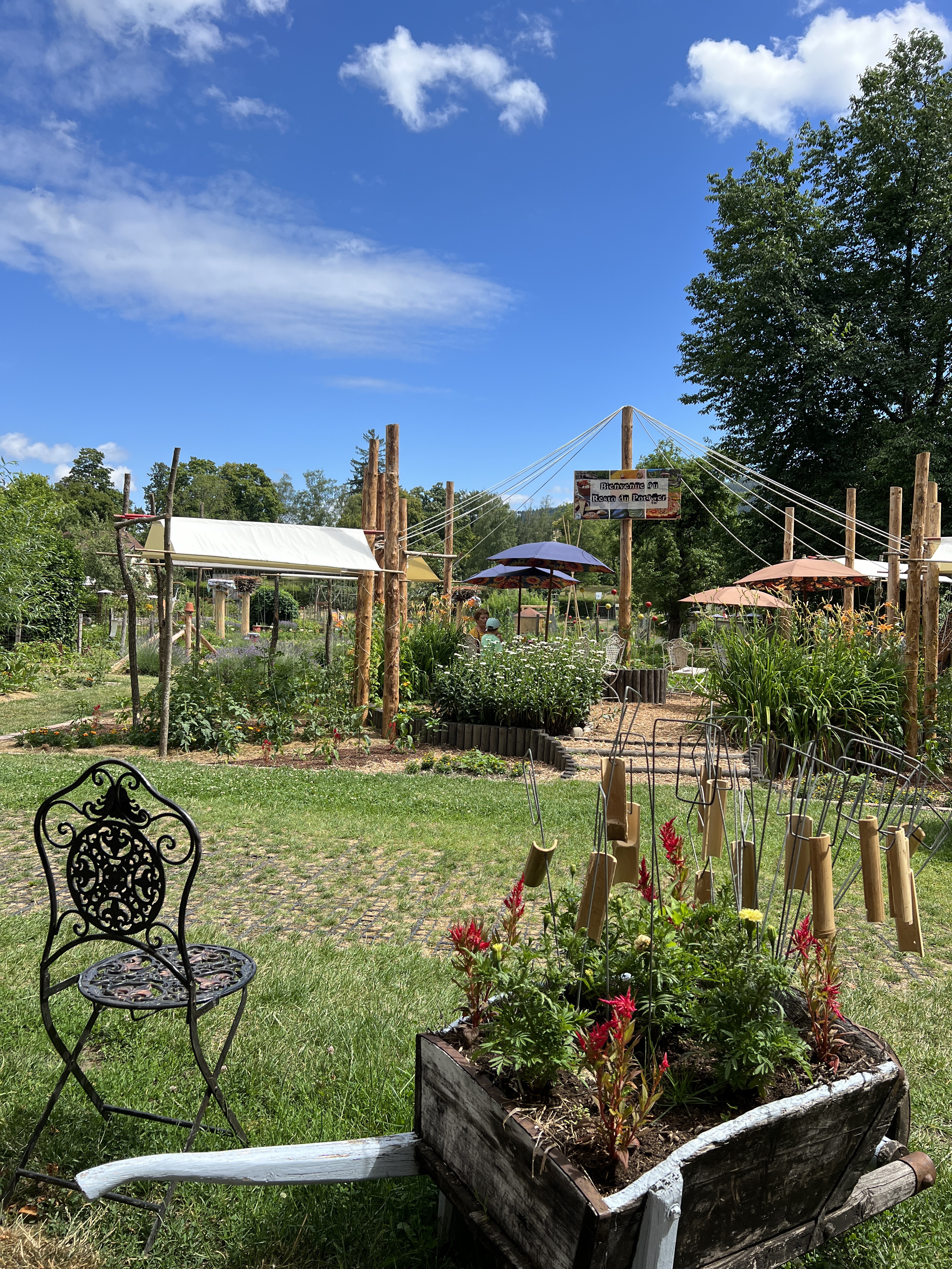 Un jardin extraordinaire qui fait le bonheur des enfants, mais également des grands, le thème de cette année est sur les cabanes des contes de fées.Un potager explicatif et ludique sur les techniques écologiques, le prix d entrée comprend des activités et entrée de musée, mais nous nous sommes concentrés sur les jardins
