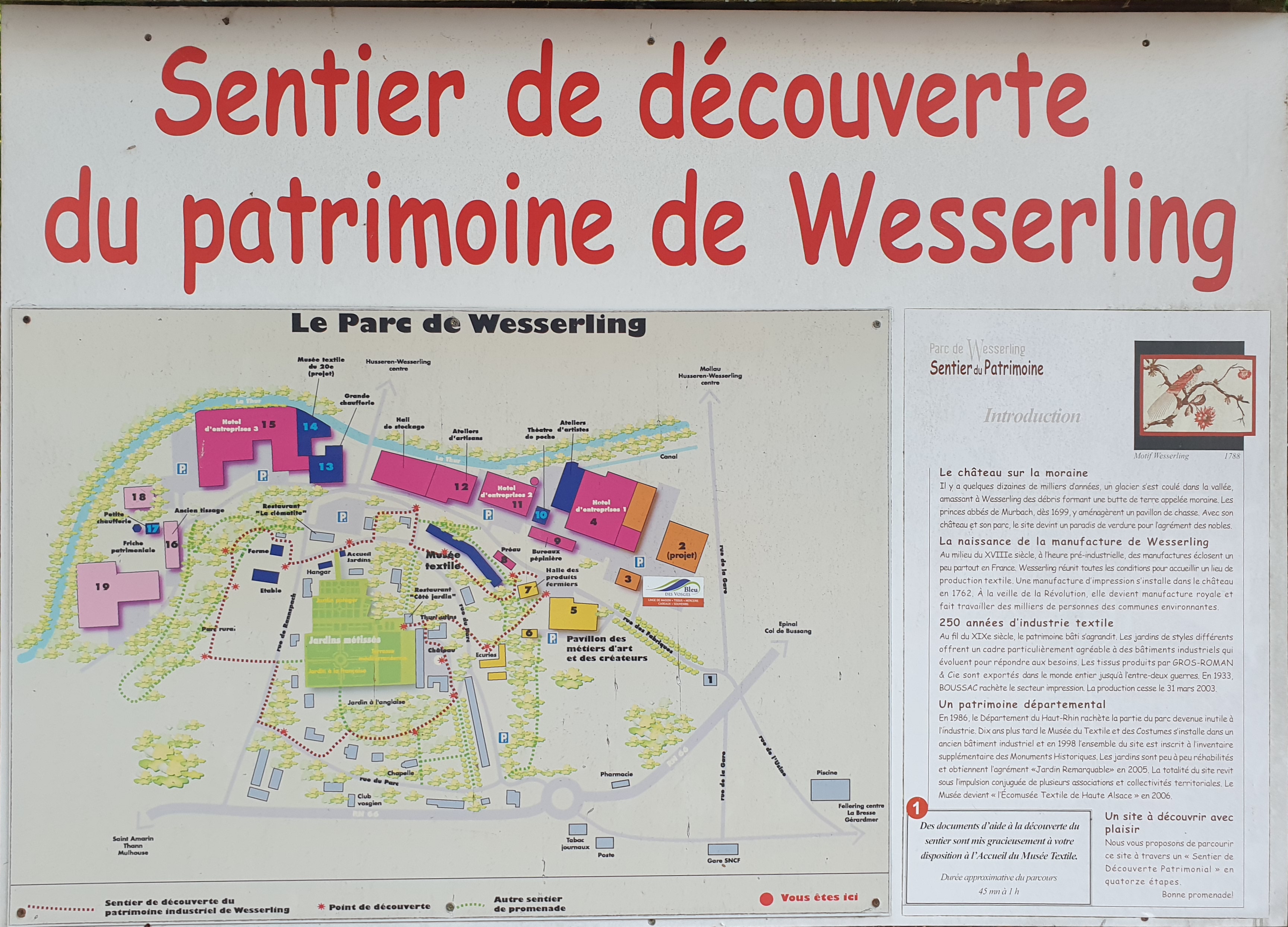 Chaque année, un nouveau thème vient redorer les beaux jardins du Parc de Wesserling. Un lieu donc à redécouvrir chaque année avec plaisir. Le travail du personnel en ce sens est à saluer. De très belles espèces de fleurs et de multiples végétaux viennent illuminer la beauté naturelle du parc. Seul petit bémol, le prix qui me semble trop élevé pour la durée de la visite.