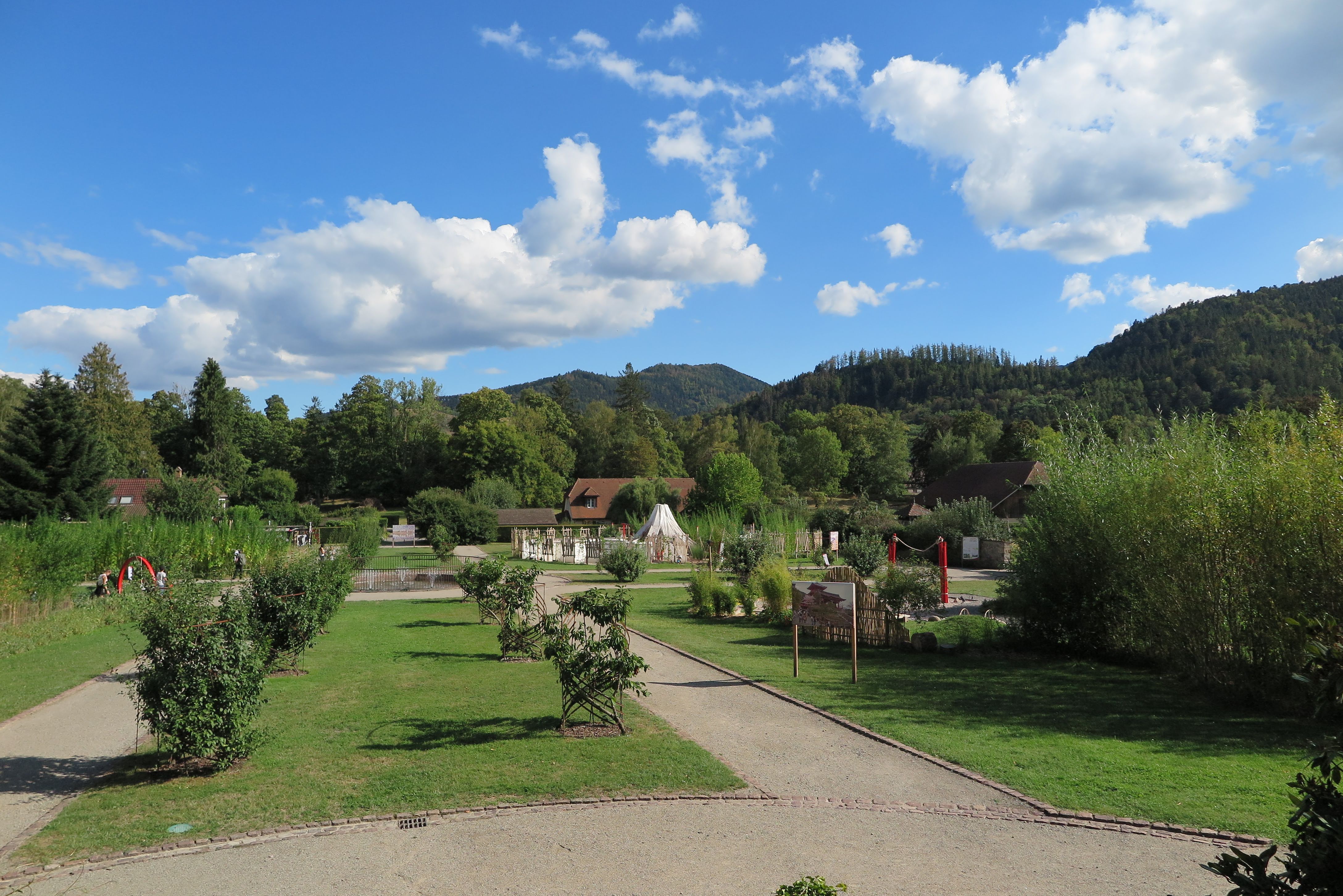 Très joli parc de Wesserling. Nous l'apprécions chaque année un peu plus. Les spectacles en soirée, les comédiens, les animations et les énigmes nous emportent le temps d'une visite dans un autre univers. Le parc est somptueux les légumes, les fleurs et les décors sont superbes. Le coin buvette et restauration proposent des bières locales, des sirops, tartes flambées (gratiné ou non, végétarienne aussi) avec en dessert des glaces, des crêpe très bien garnie (Chocolat noisette... ) .