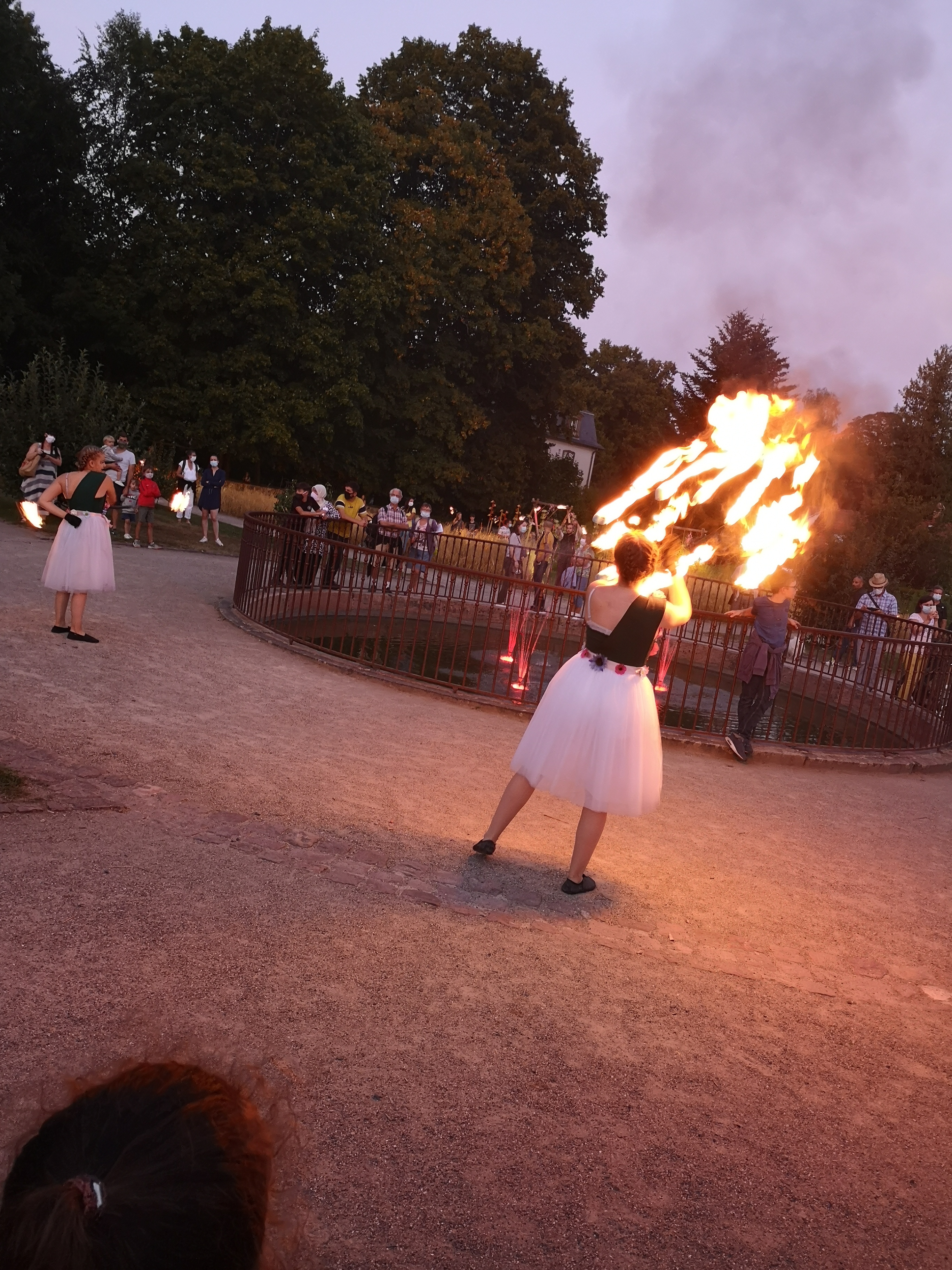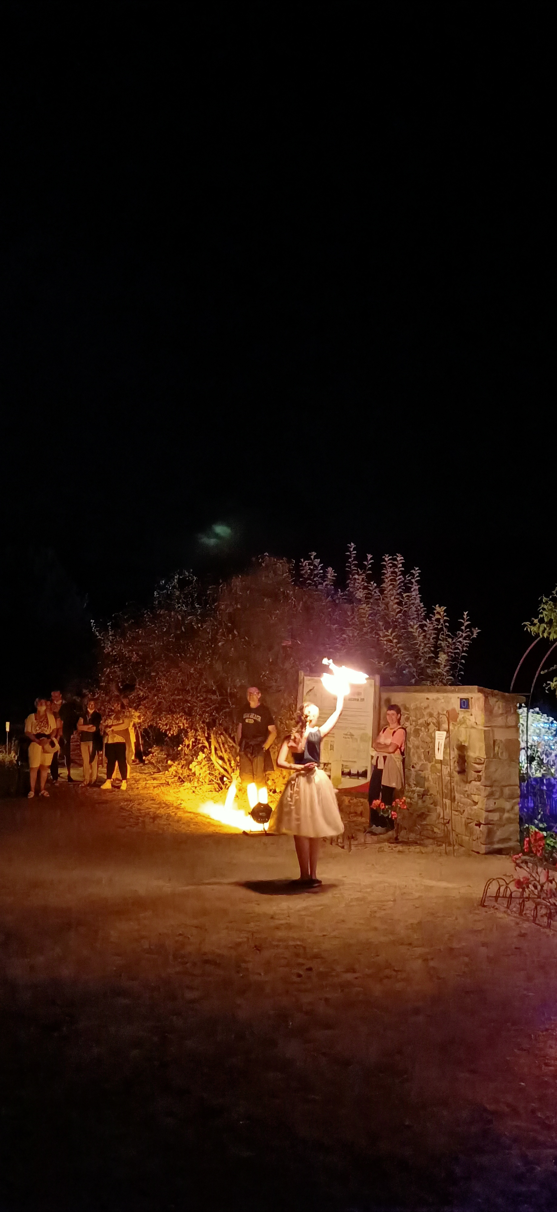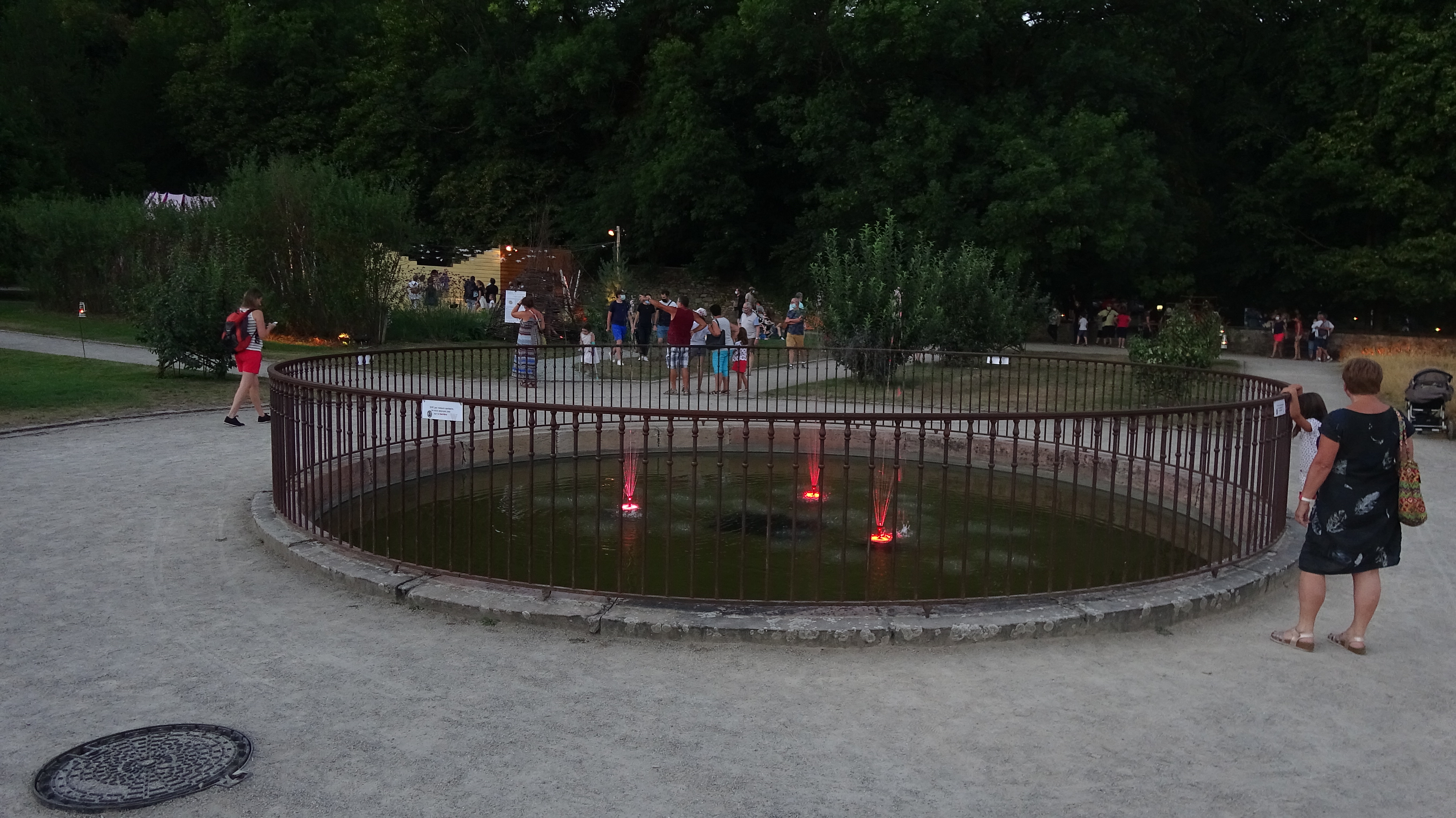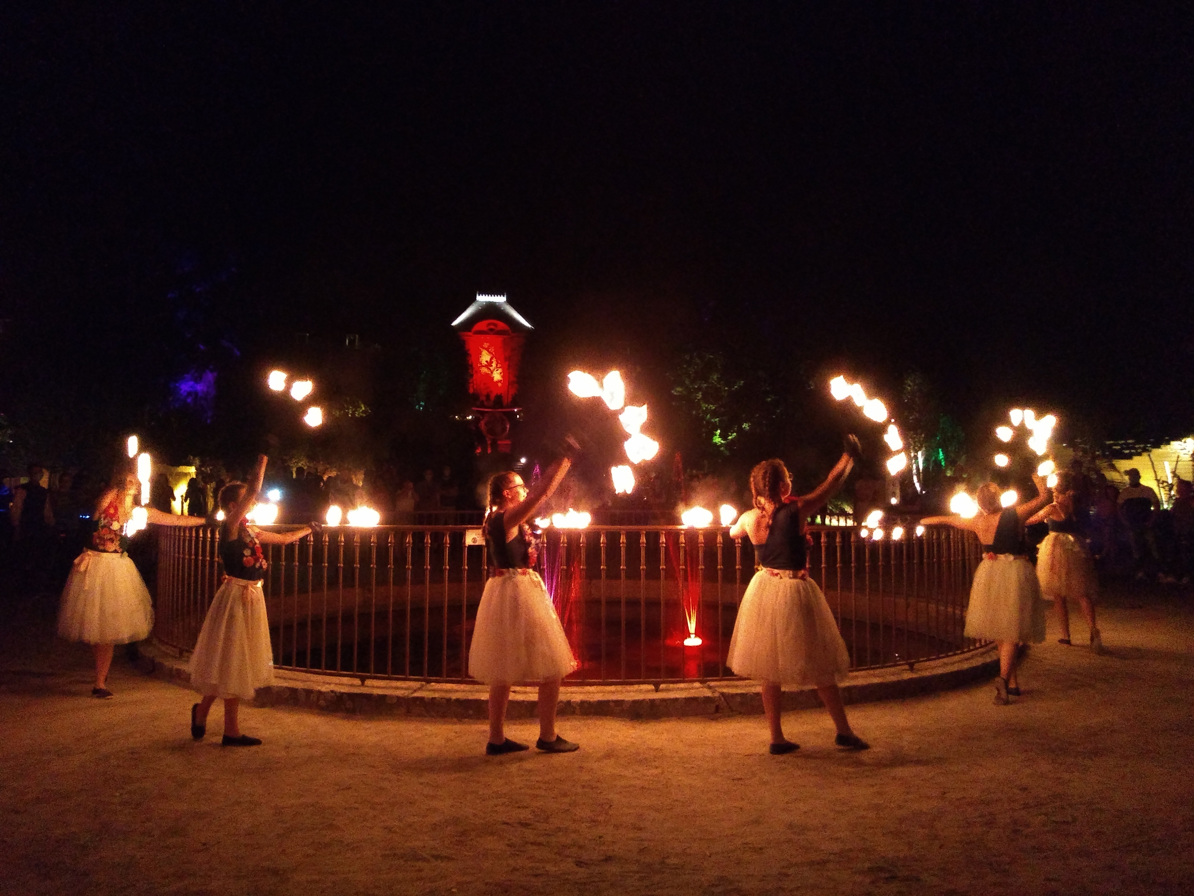 Féeries nocturnes à faire belle promenade dans les jardins en famille, illuminations féeriques, spectacle de jonglerie de feu magique.