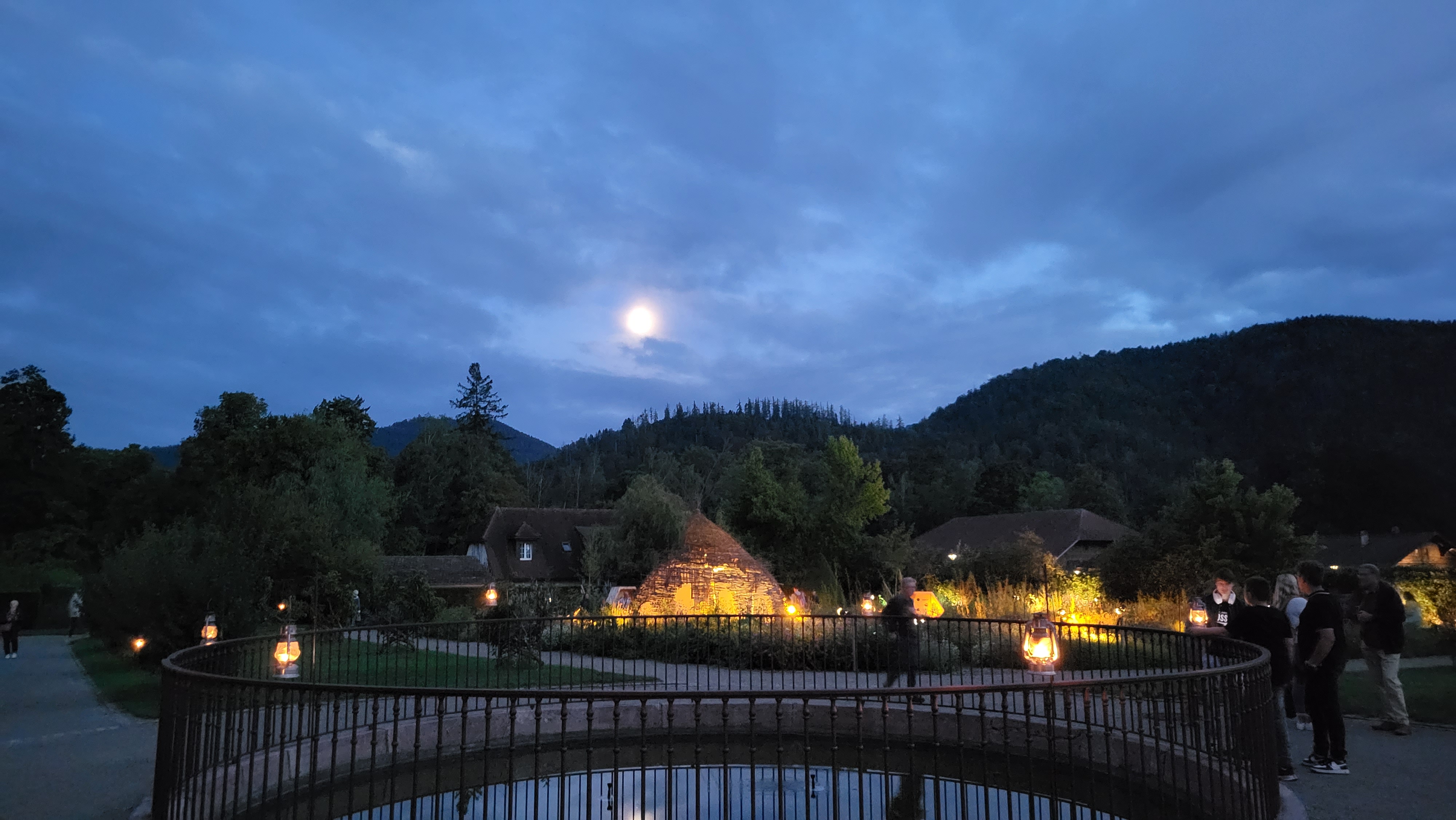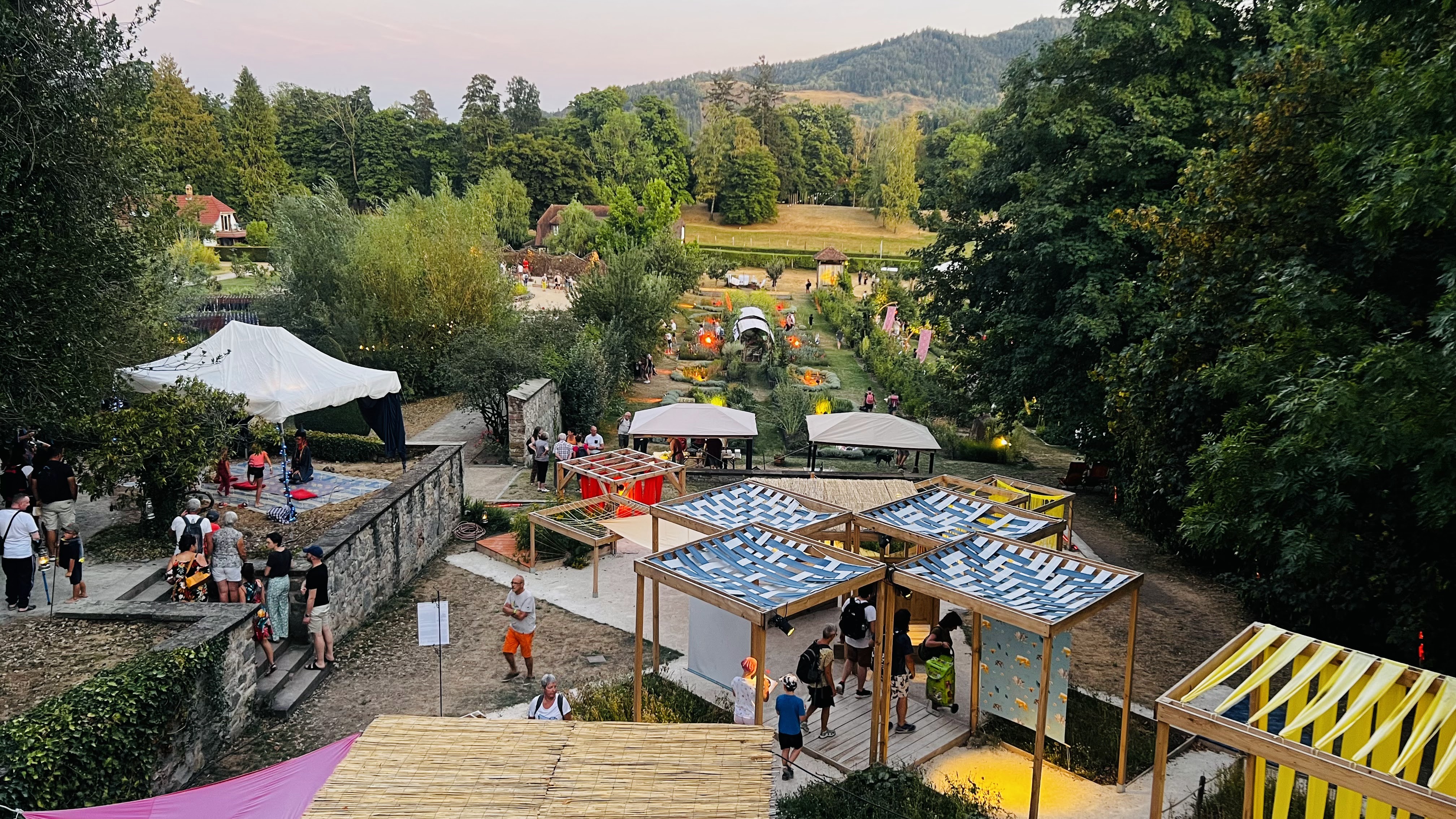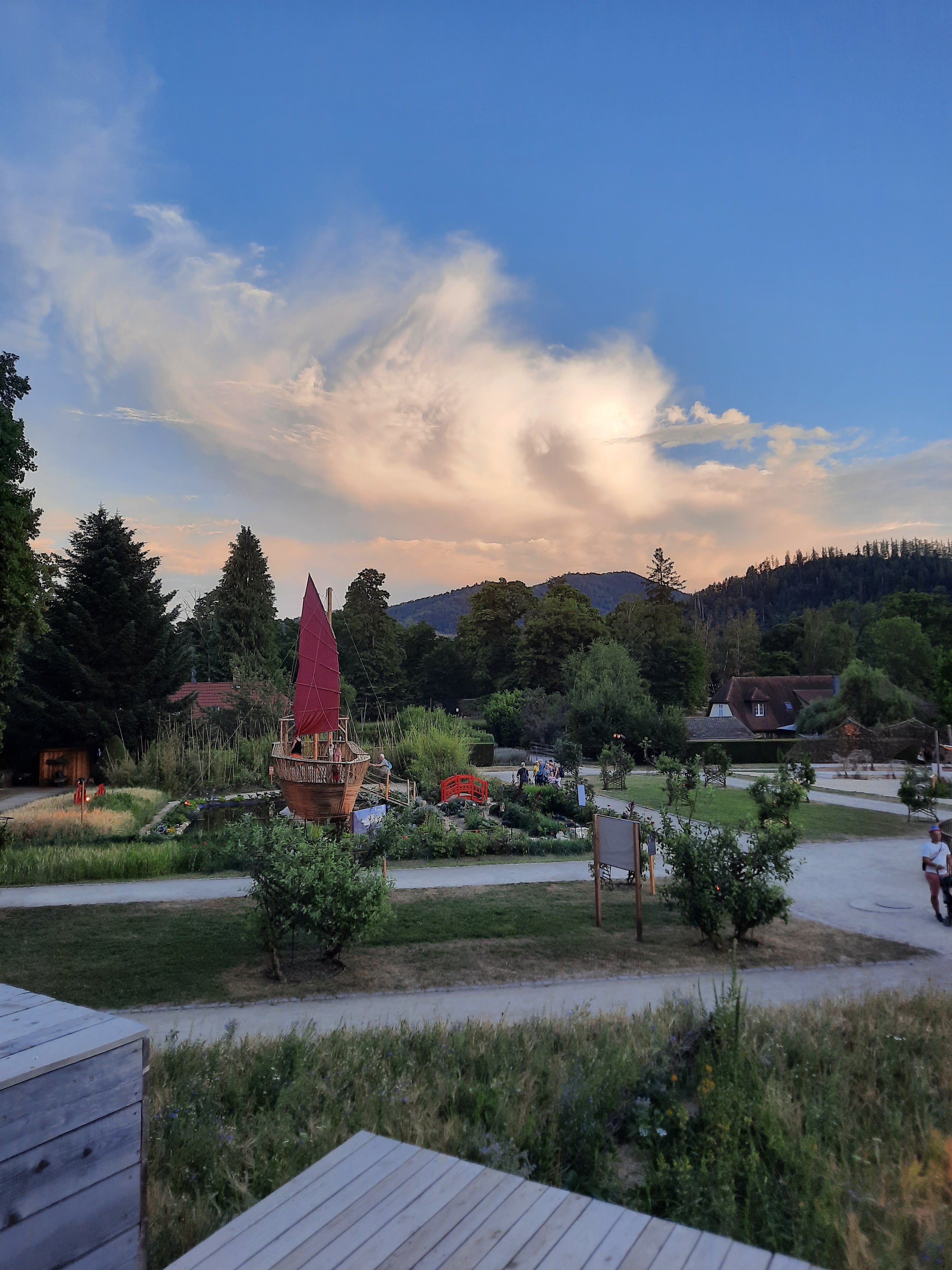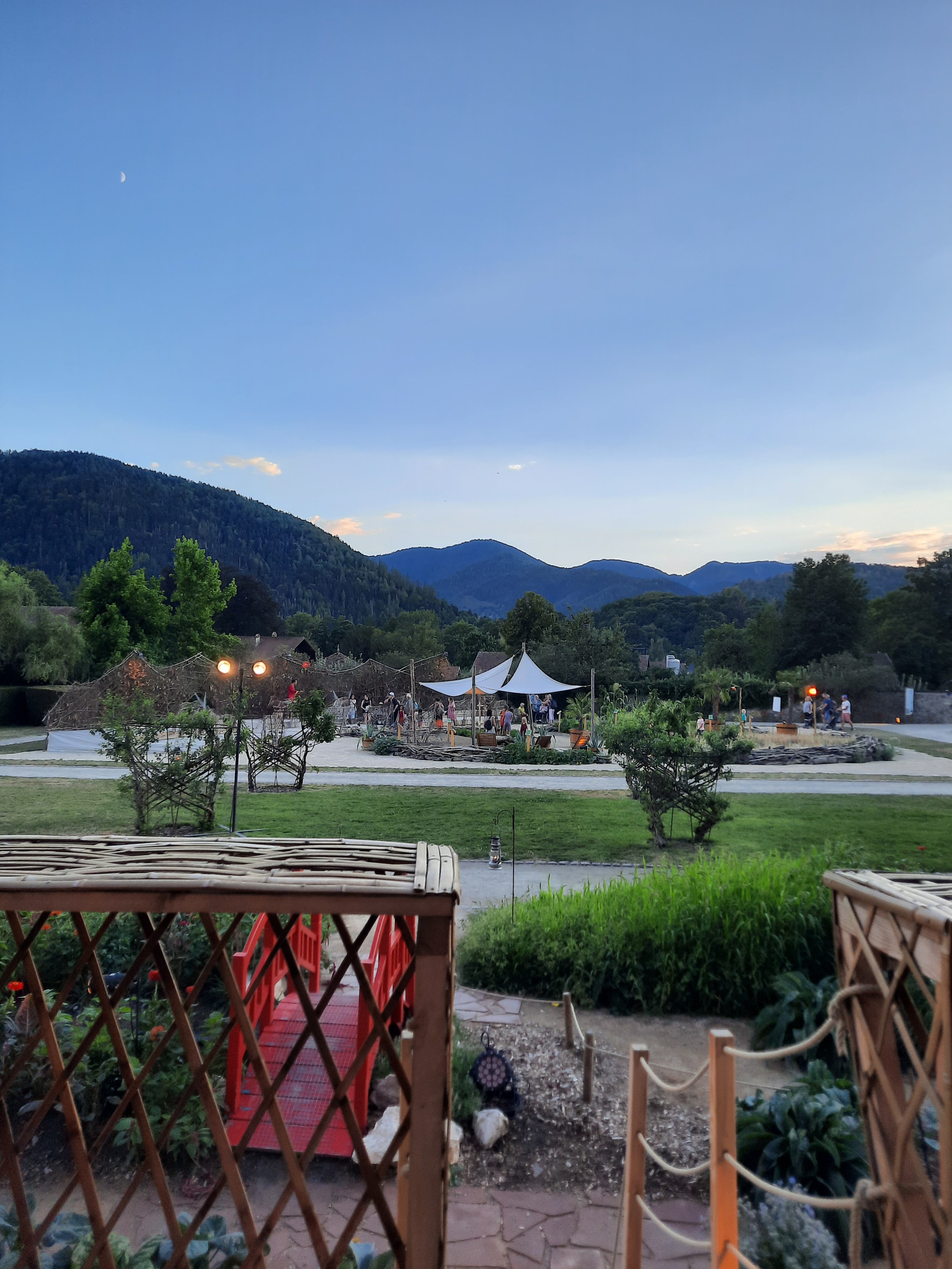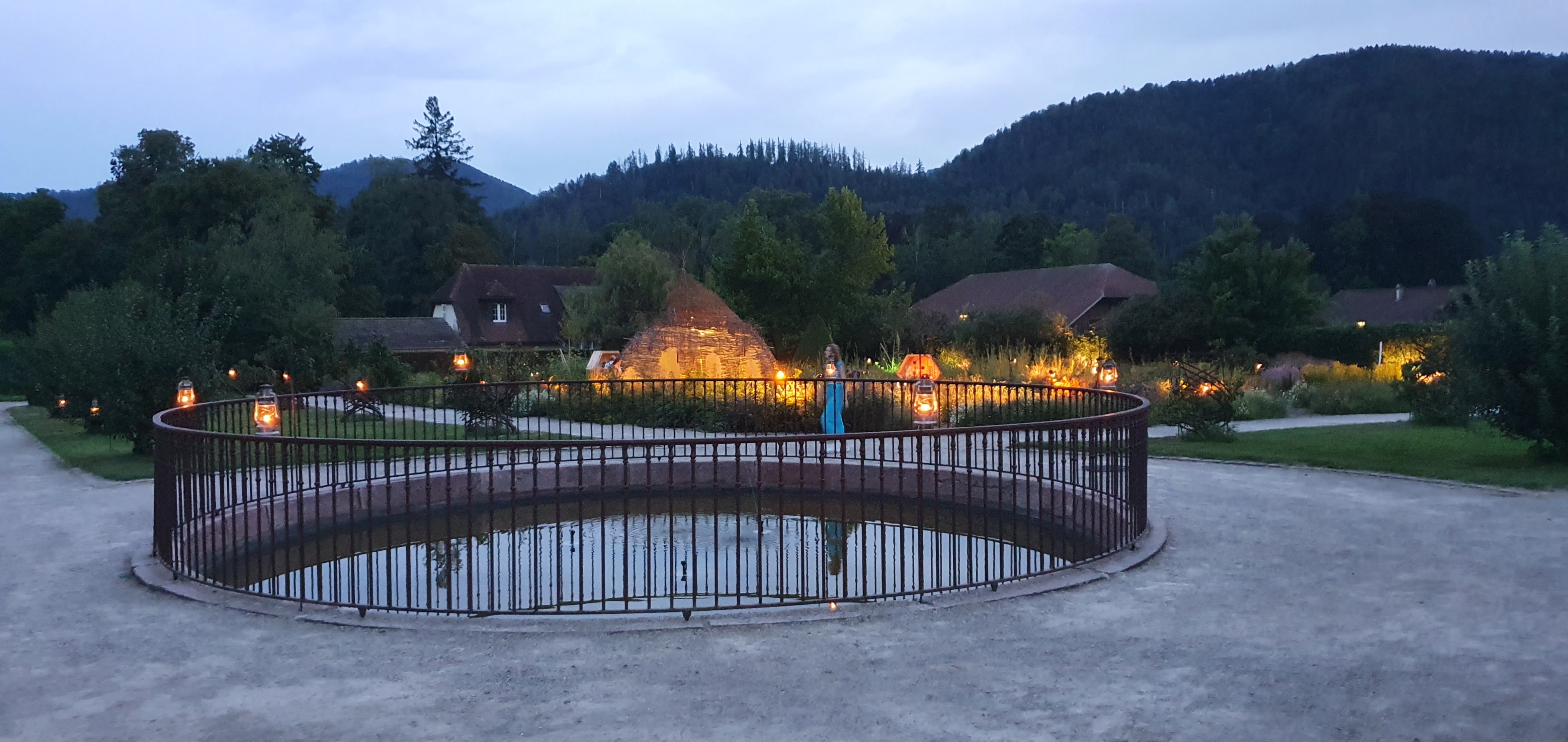 Jardin magnifiques. Tartes flambées délicieuses et très bonne ambiance chez les cuisiniers qui préparent devant vous. Spectacle nocturne de qualité. A voir absolument.