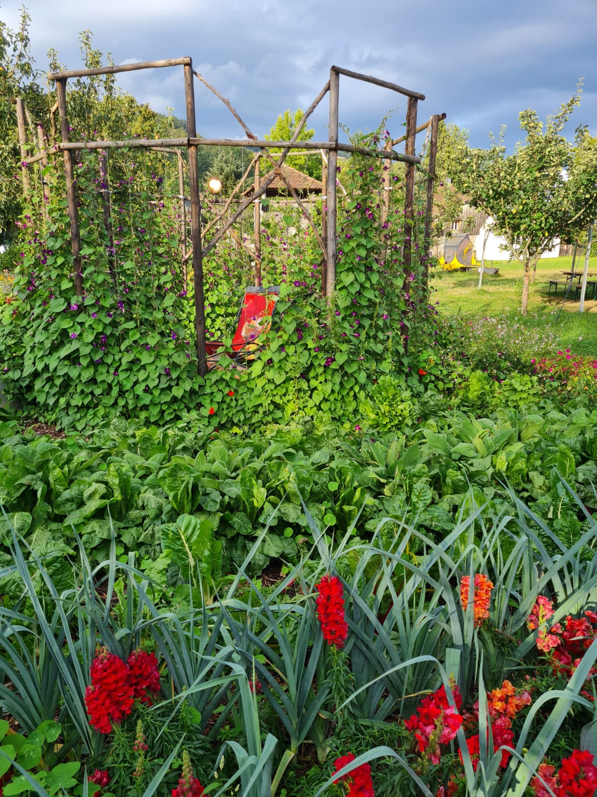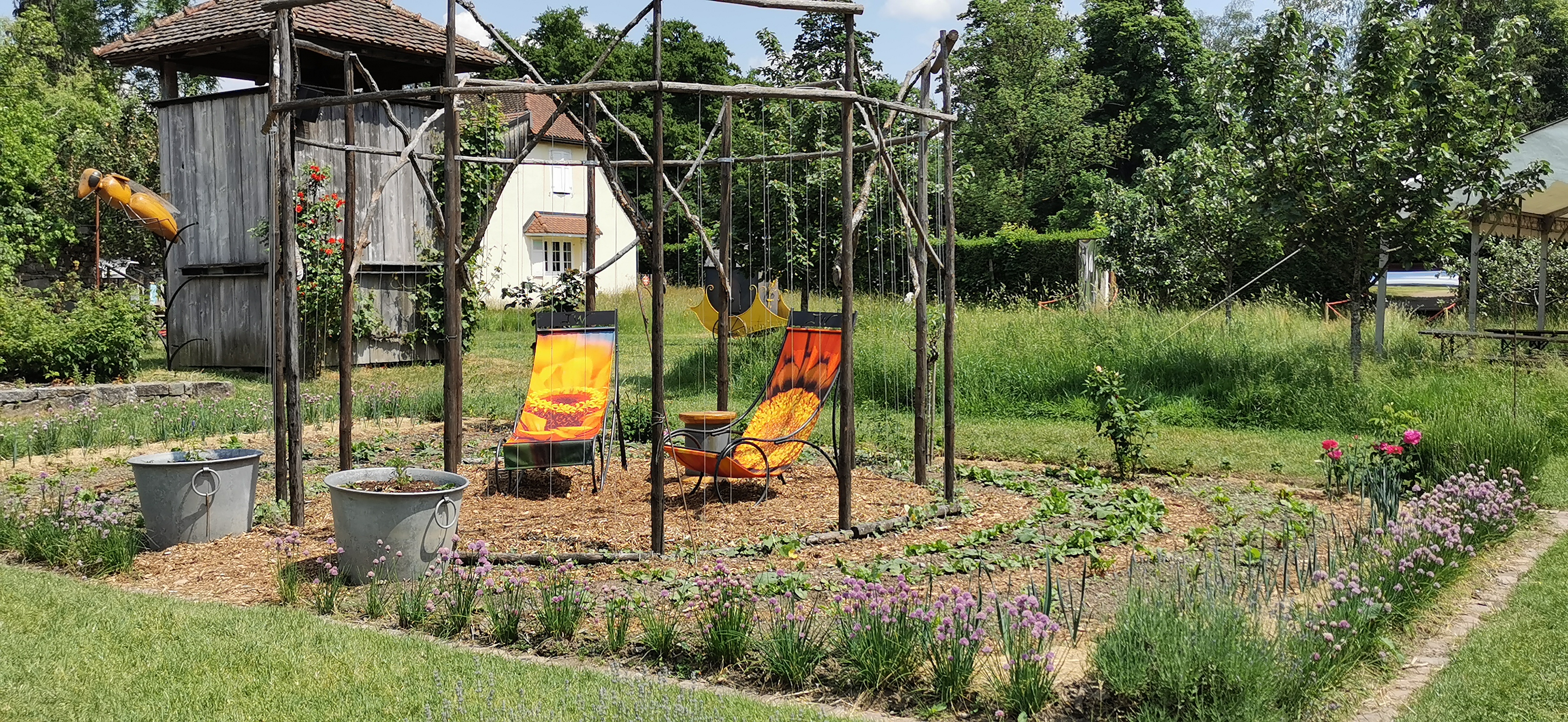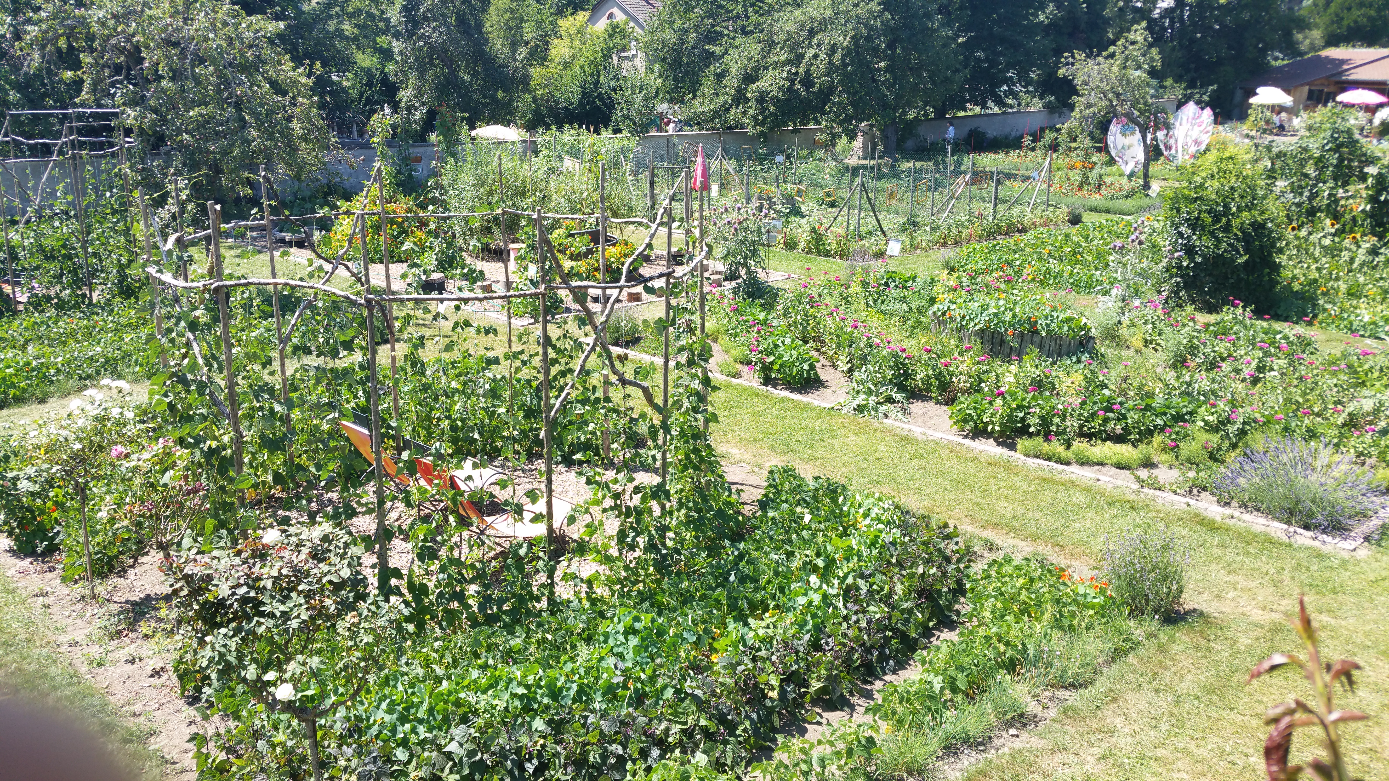 Le jardin est très agréable et bien tenu. Il vaut vraiment le déplacement avec son mélange de fleurs et de légumes très joliment aménagé. Frais et un coin petit encas et boissons très agréable.