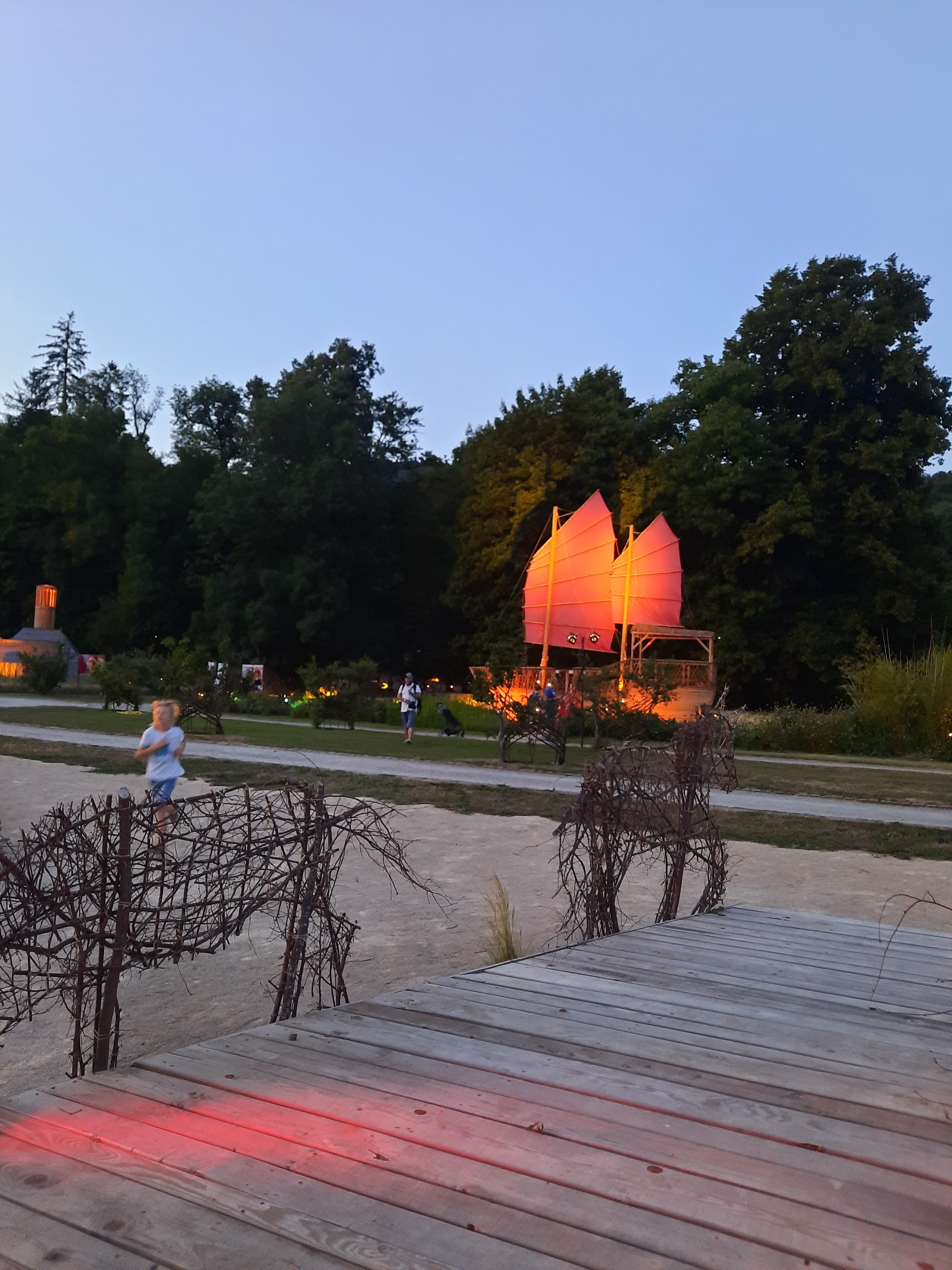 Parc agréable et entretenu. Parcours pieds nus long et complet mais manque d'un peu d'indication pour bien le suivre surtout vers le château. Bateau bois très bien fait, mais un gouvernail auraient d'avantage été apprécié par les enfants. Spectacle du feu époustouflant. Par contre, manque de restauration du jardin type courgettes farcies, plats de légumes, salades qui seraient très appréciés dans ce parc. Pas d'indication de l'heure du spectacle de feu. La nocturne n'a pas eu beaucoup de nouveautés et reste malgré 4 ans déjà passé de l'éclairage statique, qui pourrait être largement amélioré et enrichit par quelque chose de plus vivant. Quelques pistes qui j'espère pourront aider le parc à donner du renouveau aux clients qui reviennent.