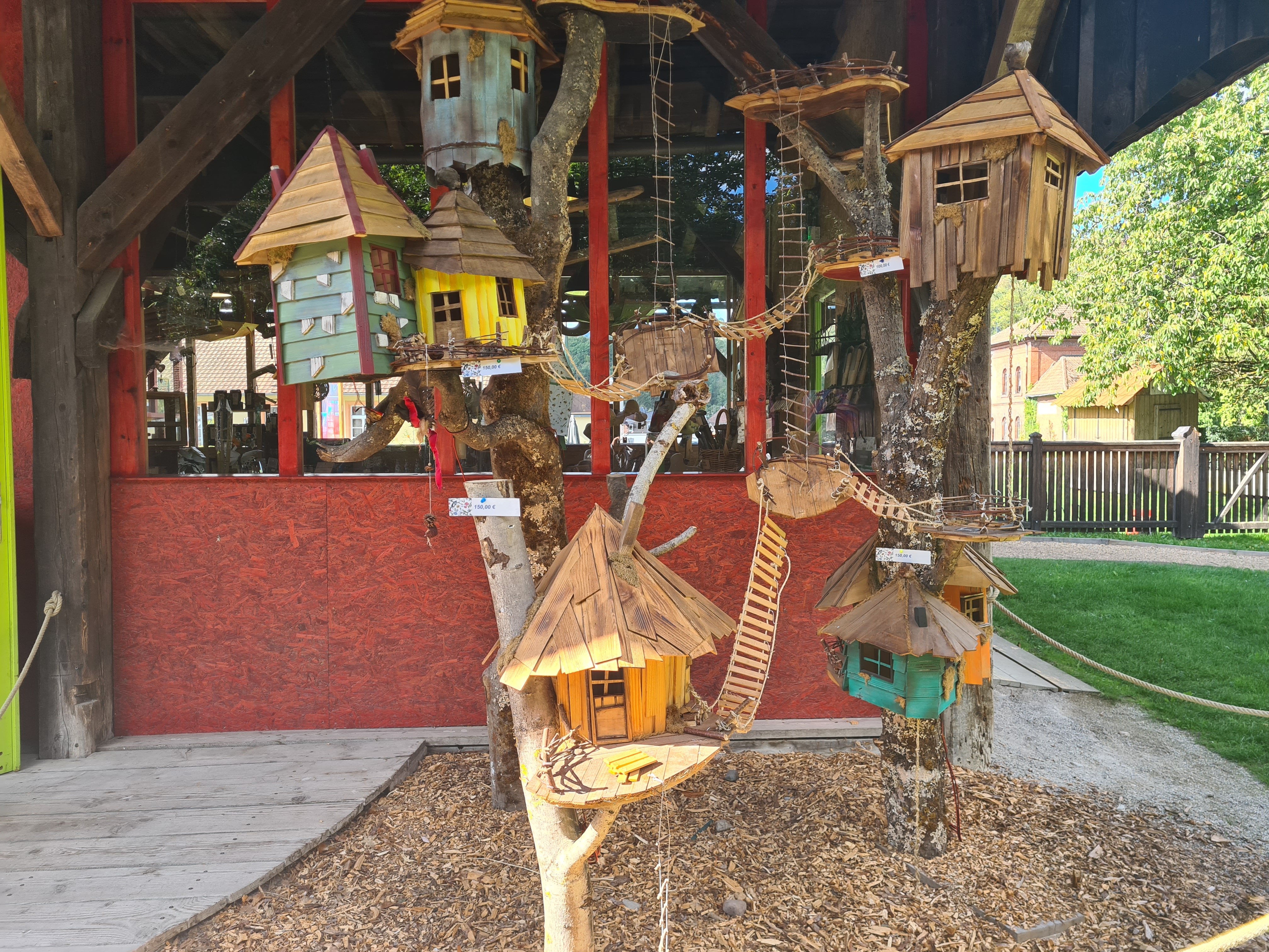 Prix élevé 12 euros quand on a le temps de visiter seulement les jardins et qu'on arrive à 15h00 !!! Ce prix englobe l'entrée au musée et à la chaufferie certes mais on voulait juste visiter les jardins Les jardins sont beaux mais très peu de cabanes dommage