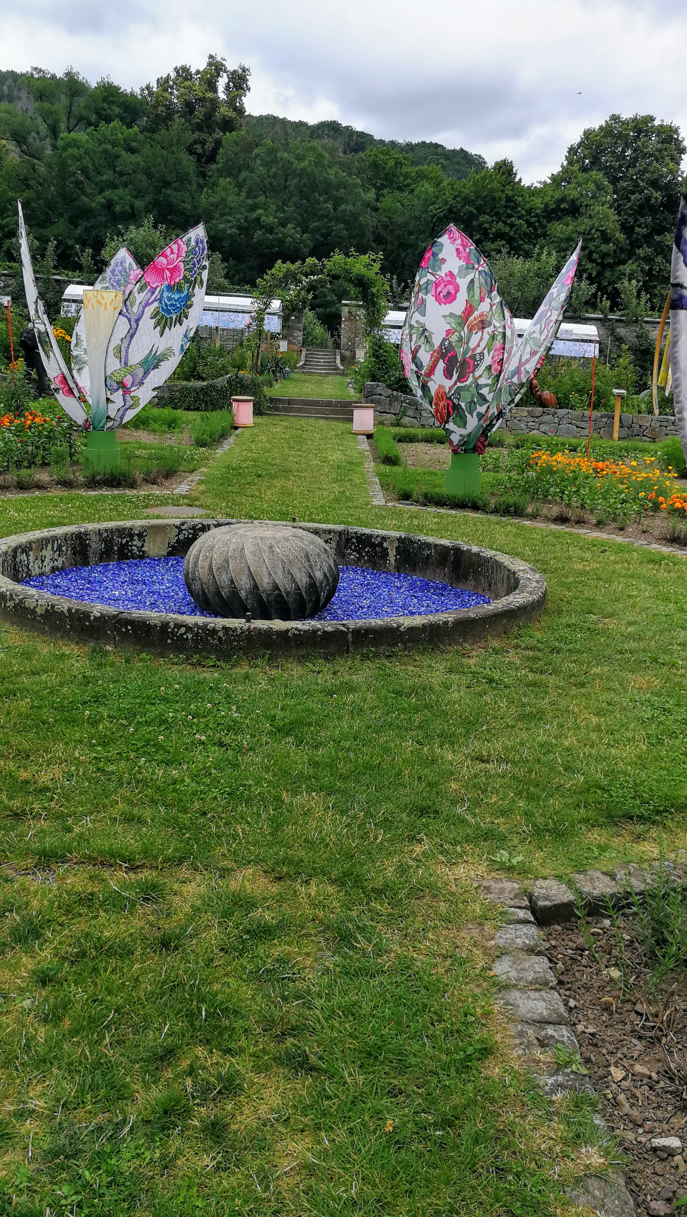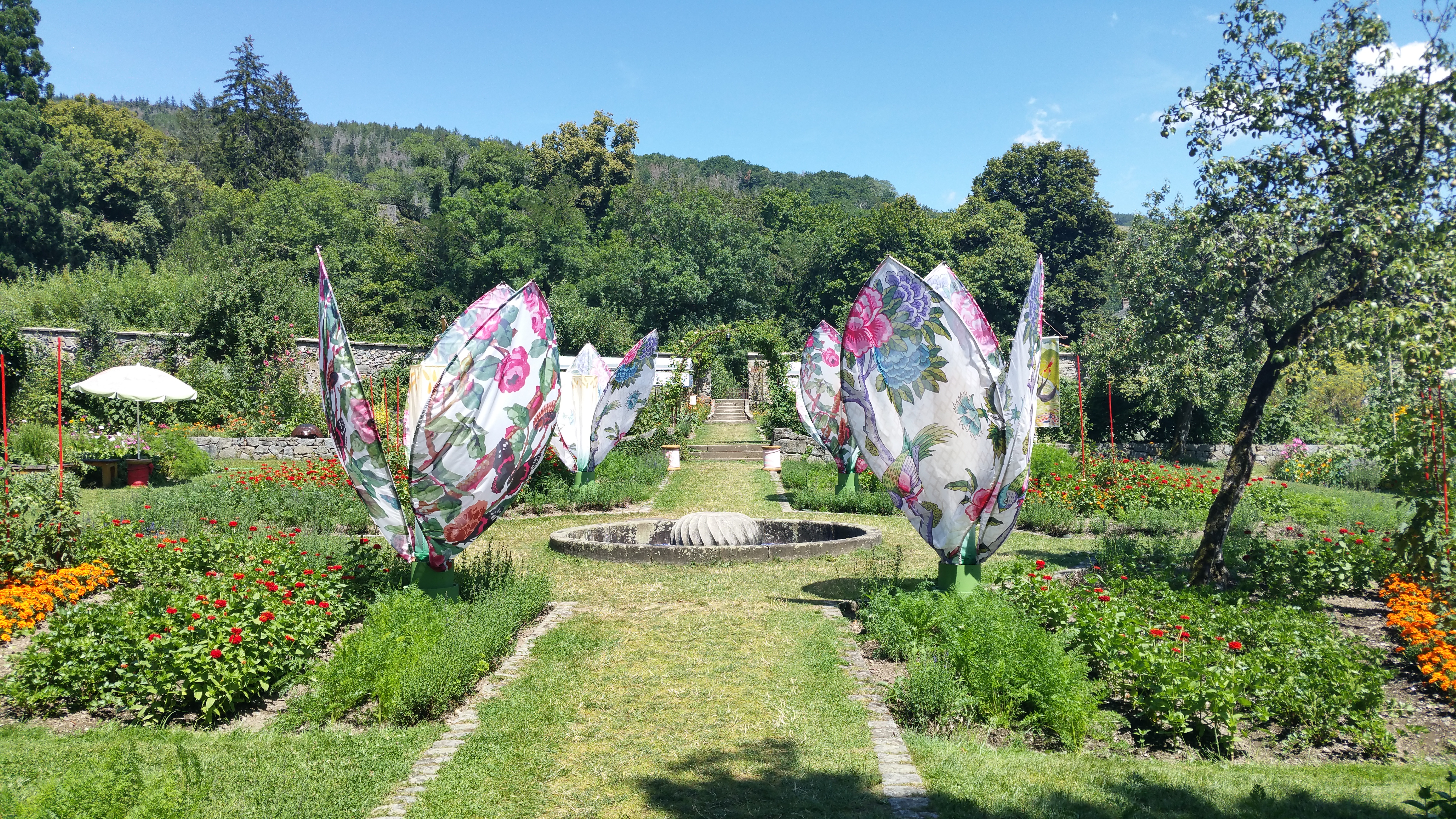 Endroit à visiter absolument ! Une journée bien remplie, entre les jardins de plantes aromatiques, de légumes, de fleurs, un grand parcours pieds nus,des sculptures et d'autres curiosités à découvrir. Le musée du textile à voir également. Vous pouvez manger sur place dans restaurant ou petits snacks ( prix très abordables), il y a même une place pour les pique-niques.