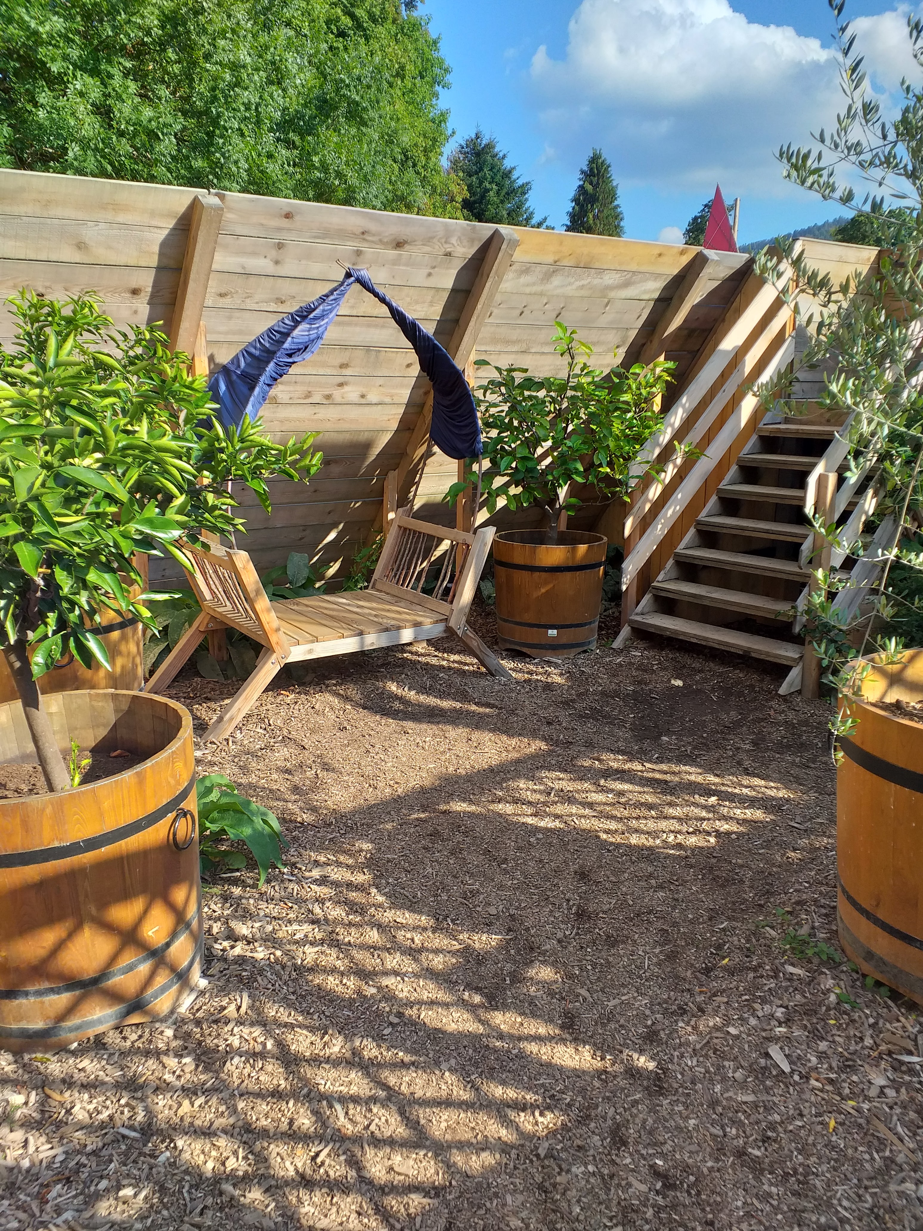 Magnifique balade dans les jardins et le parcours pieds nus et top. Il y a des cabanes également. Joli moment en famille
