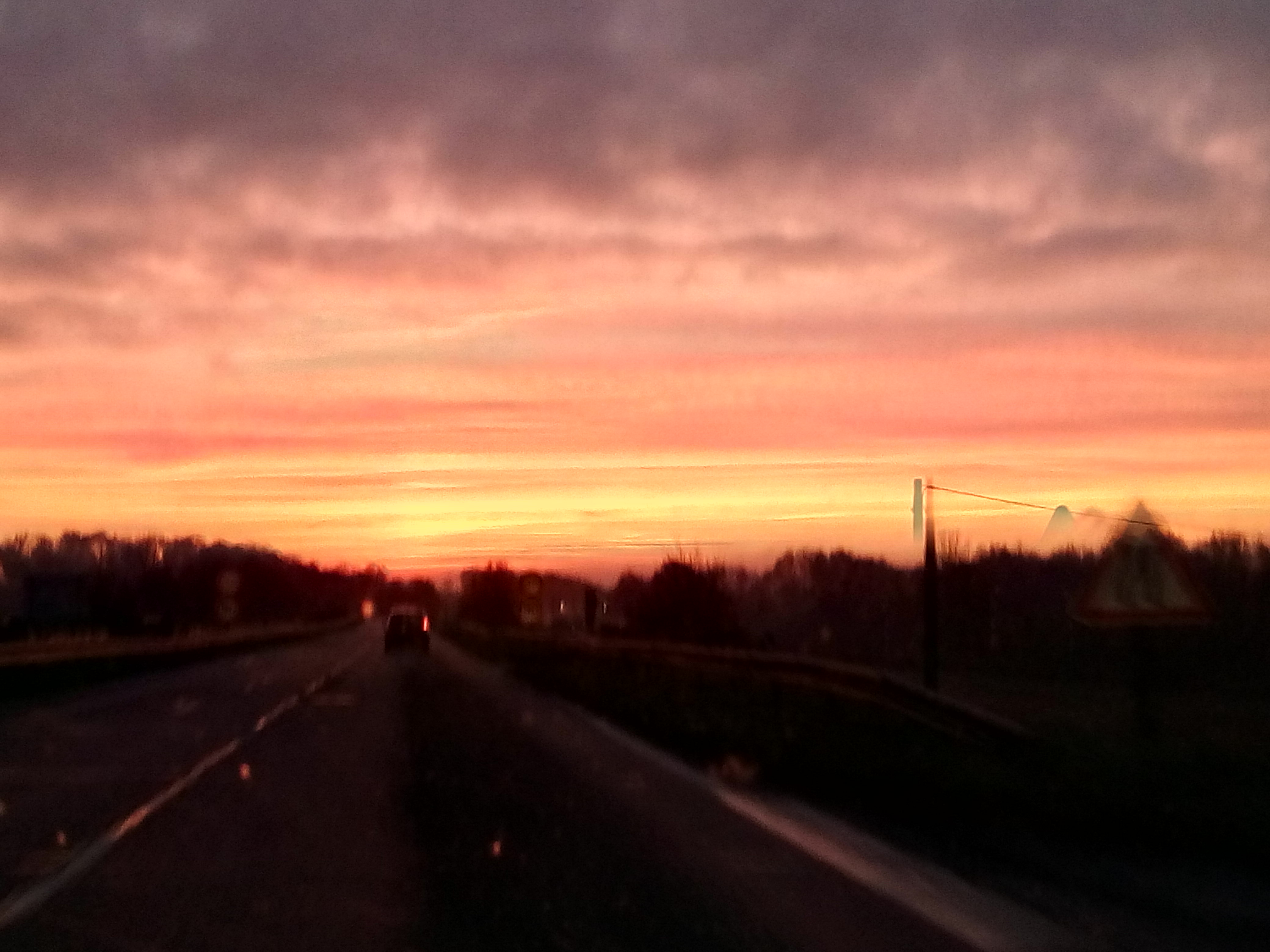 La route qui serpente au milieu de la forêt est magnifique. La couleur des feuilles des arbres se mélange et quand le soleil we couche à travers les arbres le paysage devient magique. Les odeurs de terre humide et de sapin nous font voyager.