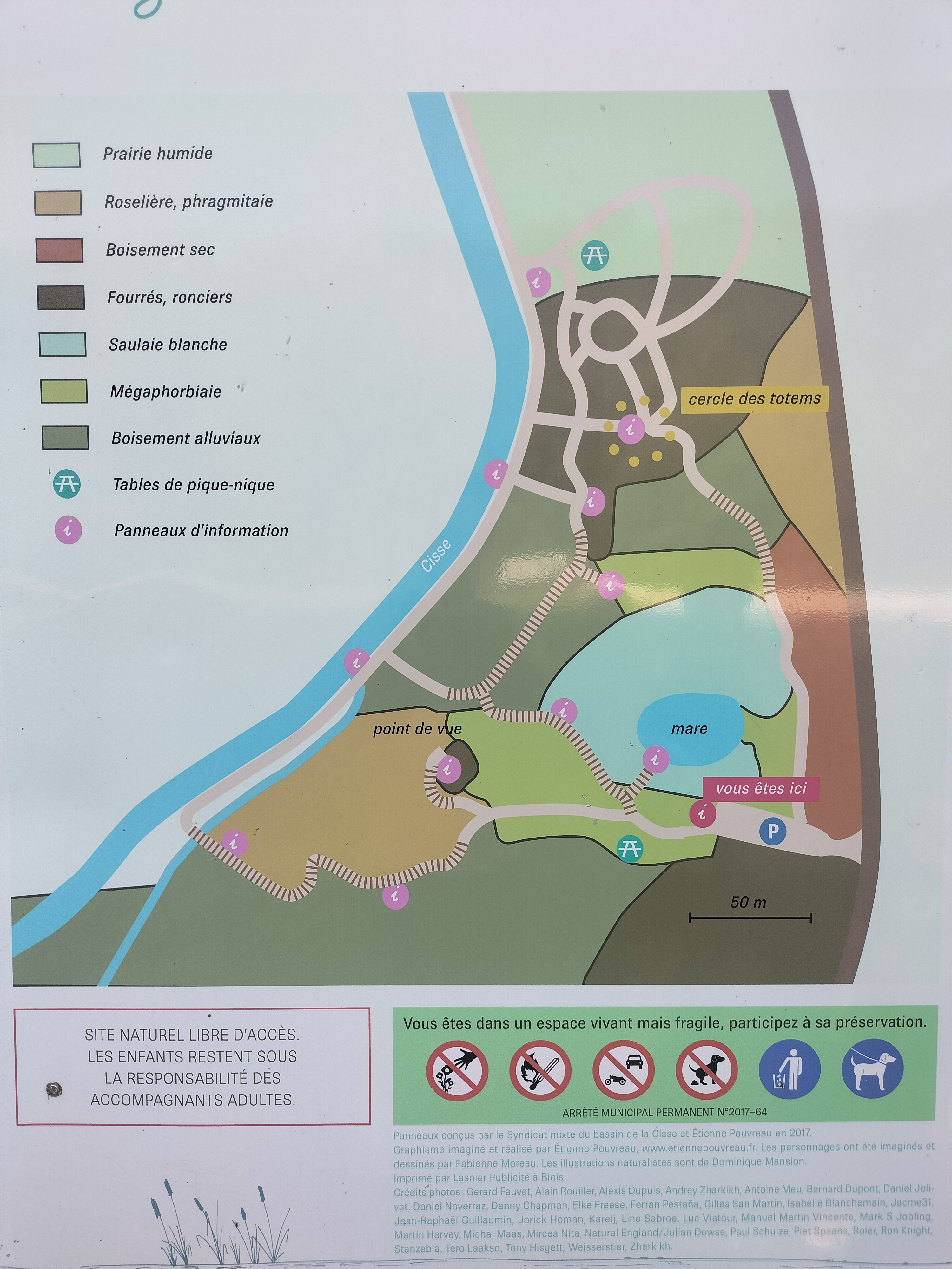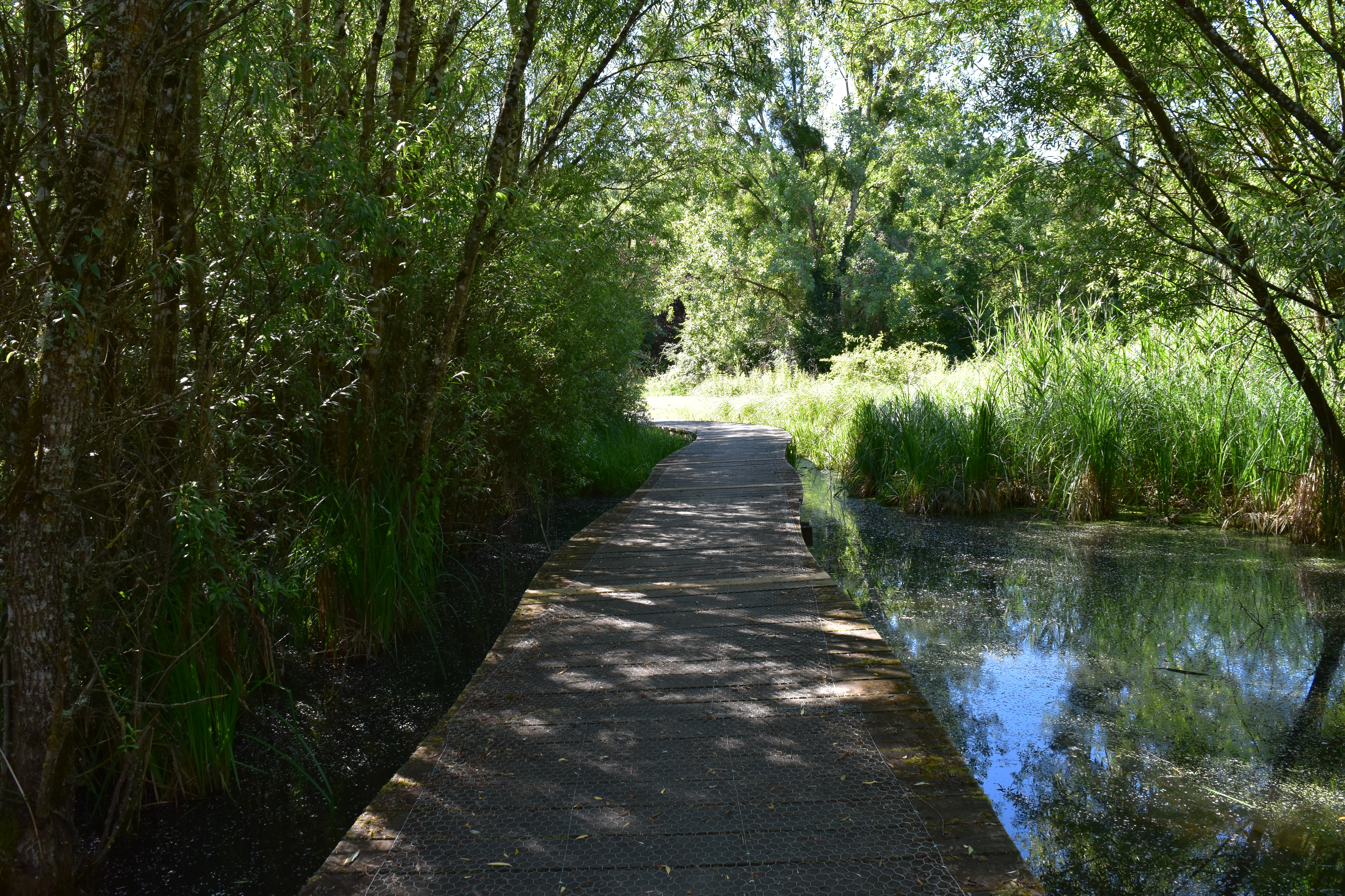 Entre chemins de bois et de terre, un parcours à la découverte de ces marécages. Une touche artistique par endroits. Attention, tout le parcours ne se fait pas sur des ponts en bois et il arrive que certains passages soient boueux. Parking juste au départ des sentiers.
